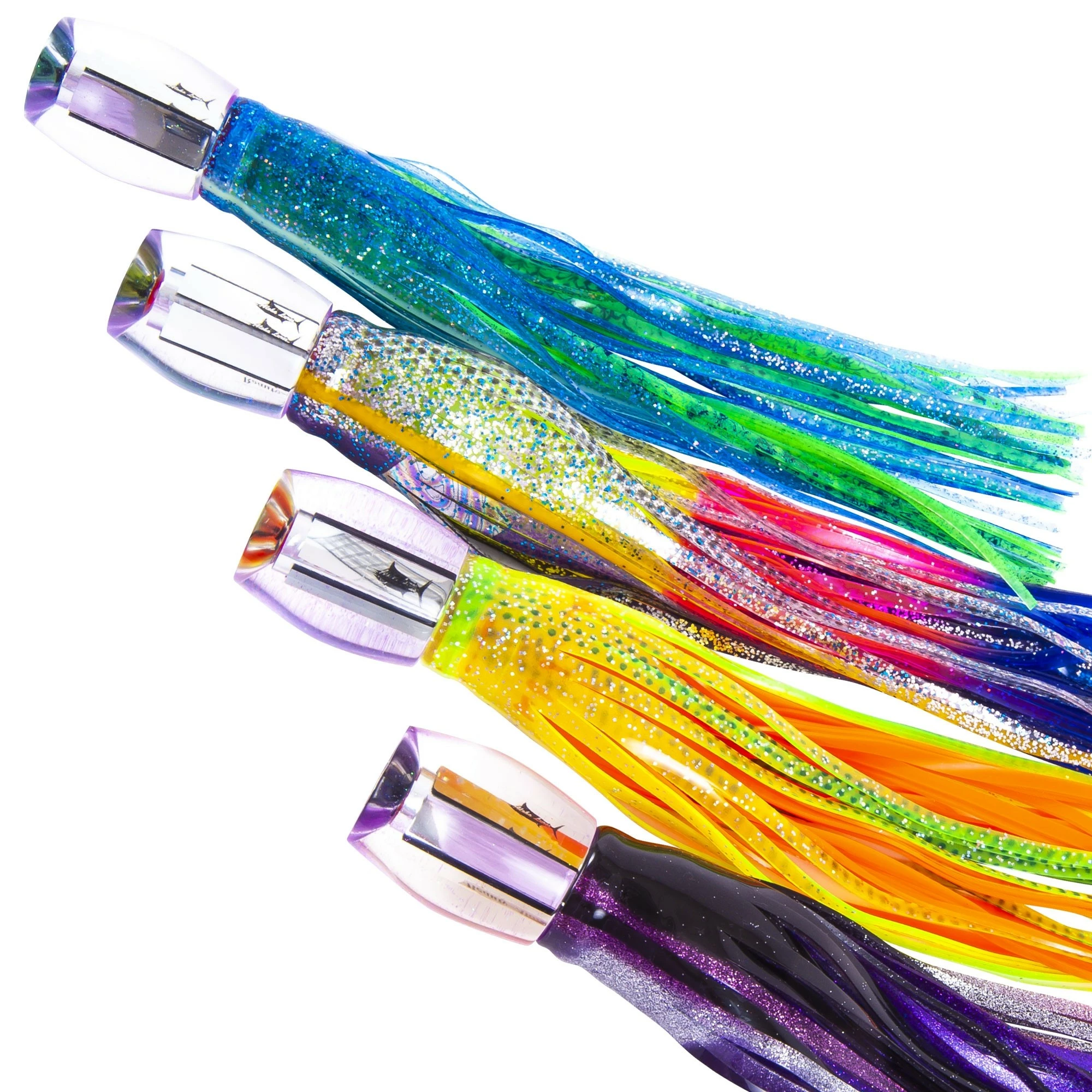In the wiggle and swim category, nothing beats an Aloha Beauty. The Aloha Large Beauty is twelve inches long and is rated for 80-130 lb. tackle. The Large Beauty, along with the entire Beauty family, is designed to run with a tight side to side motion. This explosive swimmer will catch Ono, Mahi, and Marlin.