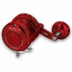 Alutecnos Albacore Gorilla 12 and 20 Reels are small, powerful, elegant and immediately recognizable, this is the synthesis of the new Albacore 12 and 20 Gorilla reels. With its MULTI DRAG DISC that can be set over 40 lbs, a guaranteed free-spool, and a 4,4:1 ratio that proves to be perfect with this high power, it will be possible to lie in wait for and pull quickly on board preys that otherwise with conventional reels would be very difficult if not impossible to catch. Expressly studied for extreme deep-jigging, it stands out not only for its powerful and functional performance, but also for its elegant look, silver anodizing, drag release button and red coloured handle. Albacore 12 and 20 Gorilla reels, once more a “masterpiece for the art of fishing” by Alutecnos.