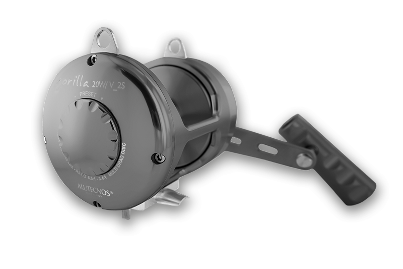 The Alutecnos Gorilla 20W Two Speed Reel feature integrated drag pre-set and side plate with ergonomic design for the maximum comfort during the fishing action. The Double Drag Disc (Multi Drag Disc) can be set up to 45 lbs with guaranteed free spool. A longer lever with an ergonomic aluminum handle provides comfort and allows maximum use of the power of this reel.