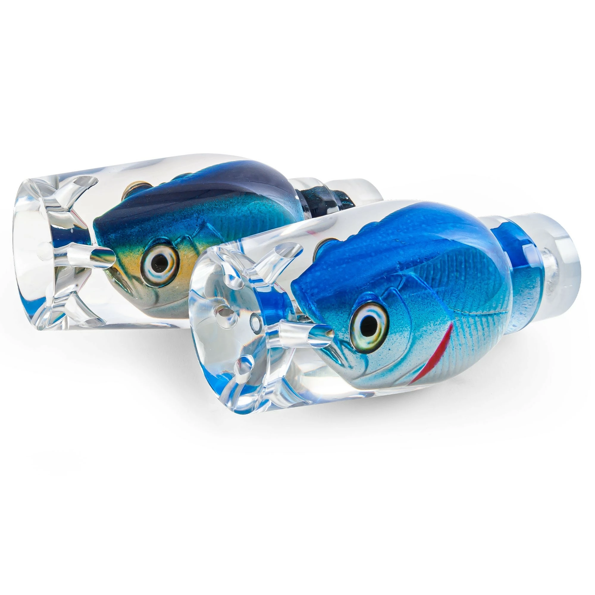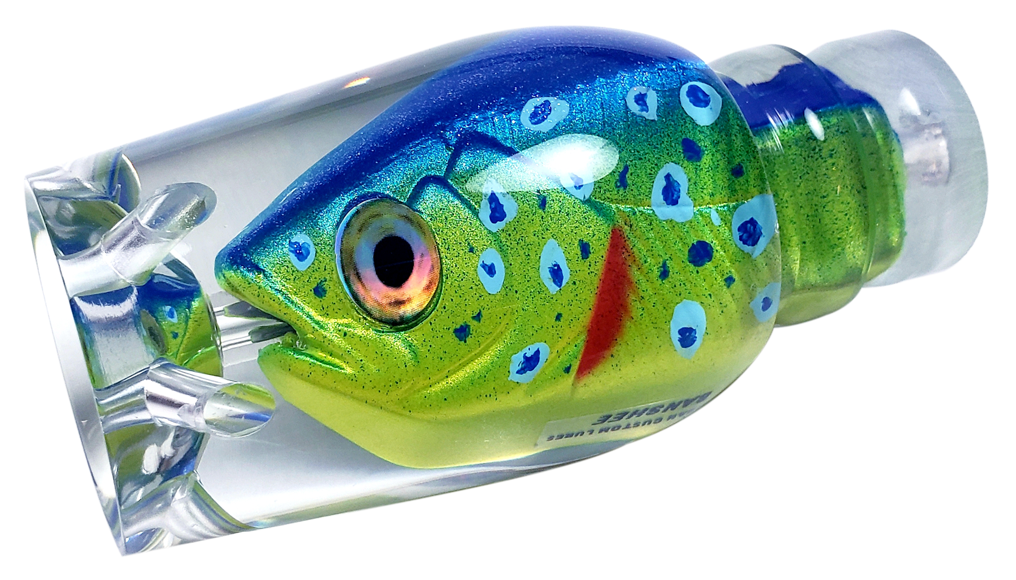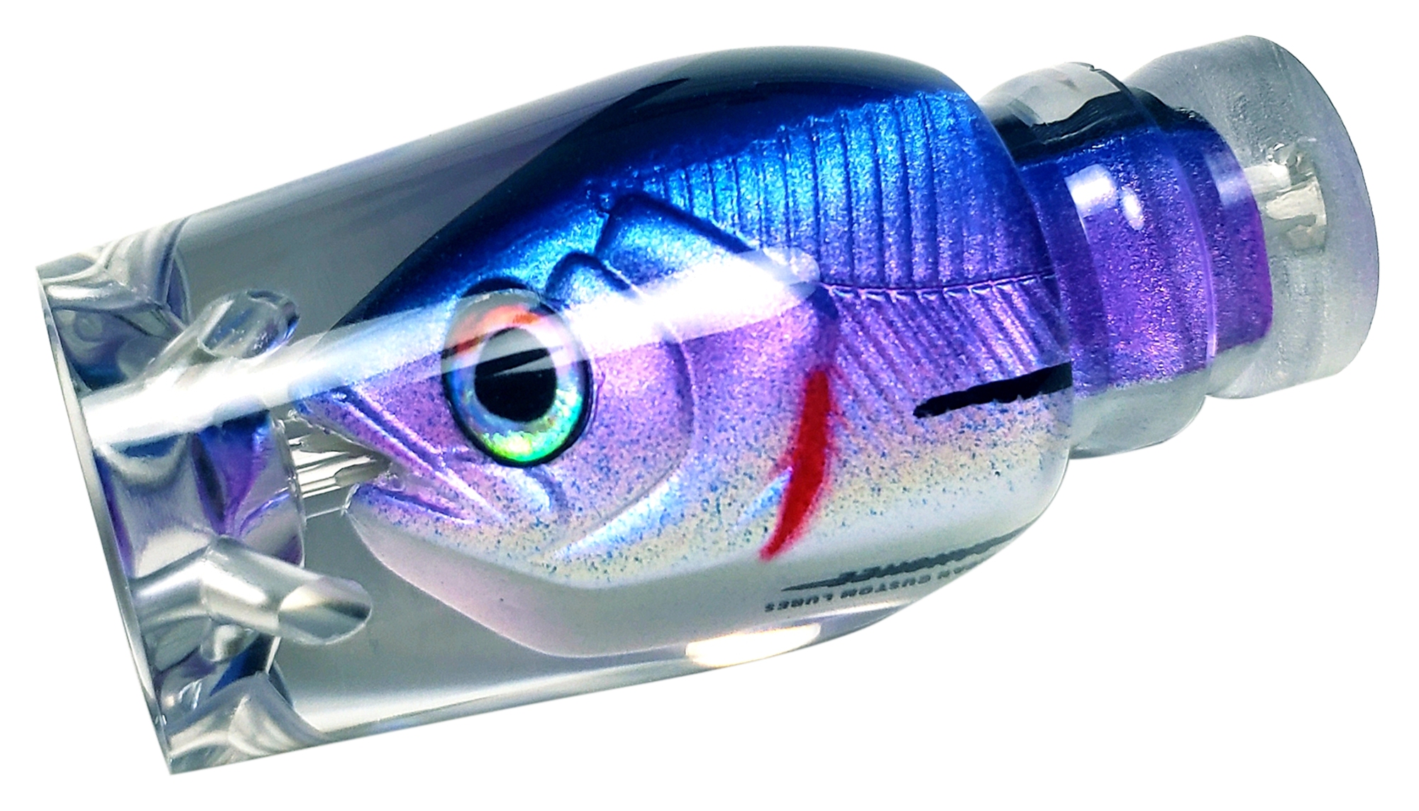 With its deep cupped face, 6 jets, and long tapered rounded head the Banshee will rock and roll in its positions. Creating a long bubble trial and tight head shake while diving then consistently popping when surfacing. The Banshee is a tournament go to and has accounted for well over a dozen tournament wins in the short time since it first hit the water. Its unique shape also performs at slower speeds allowing it be presented in a dead bait/ or dredge fishing spread. Banshee sweet spot is the rigger positions.