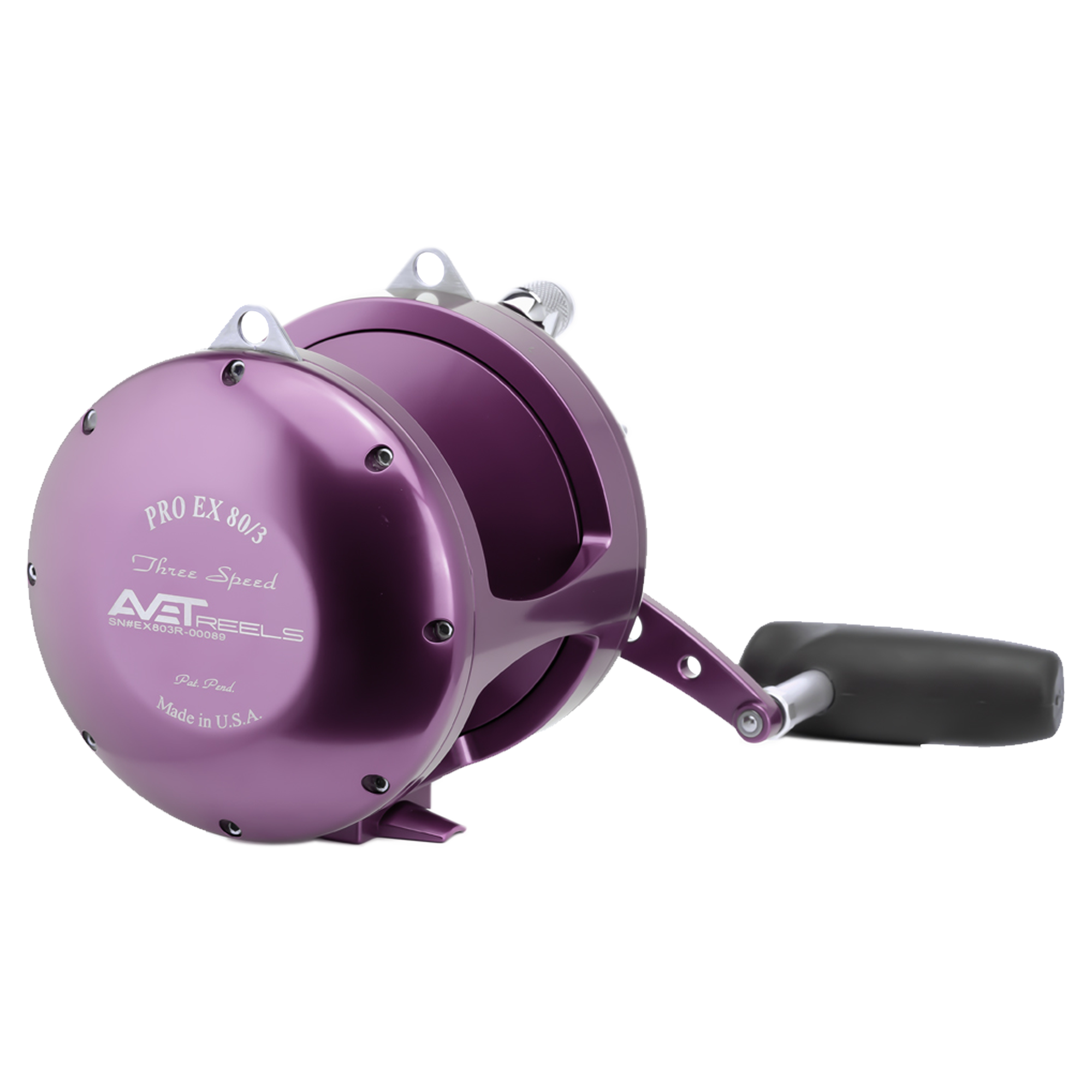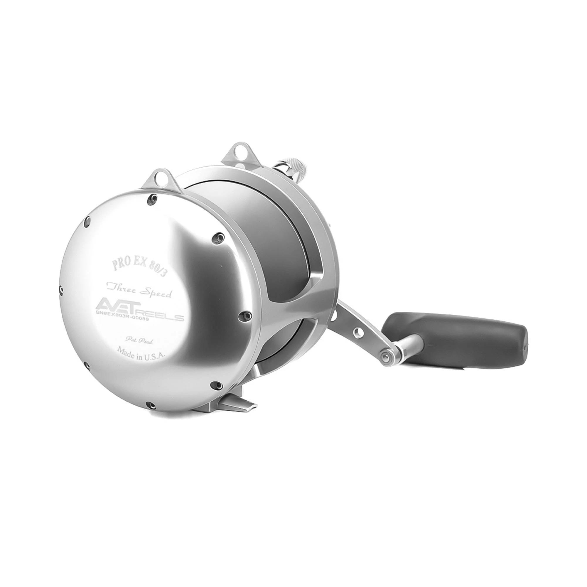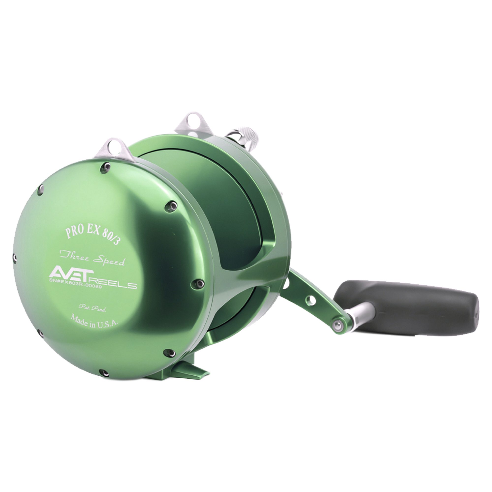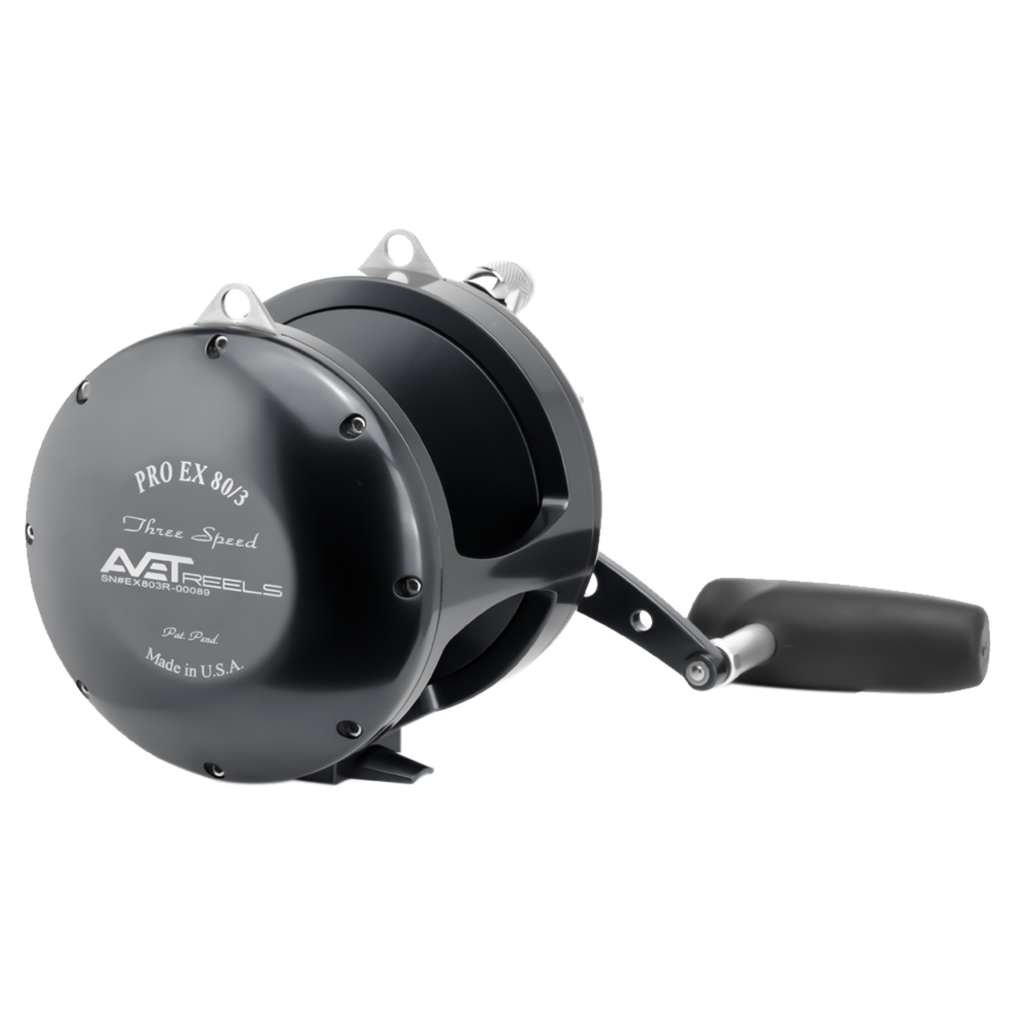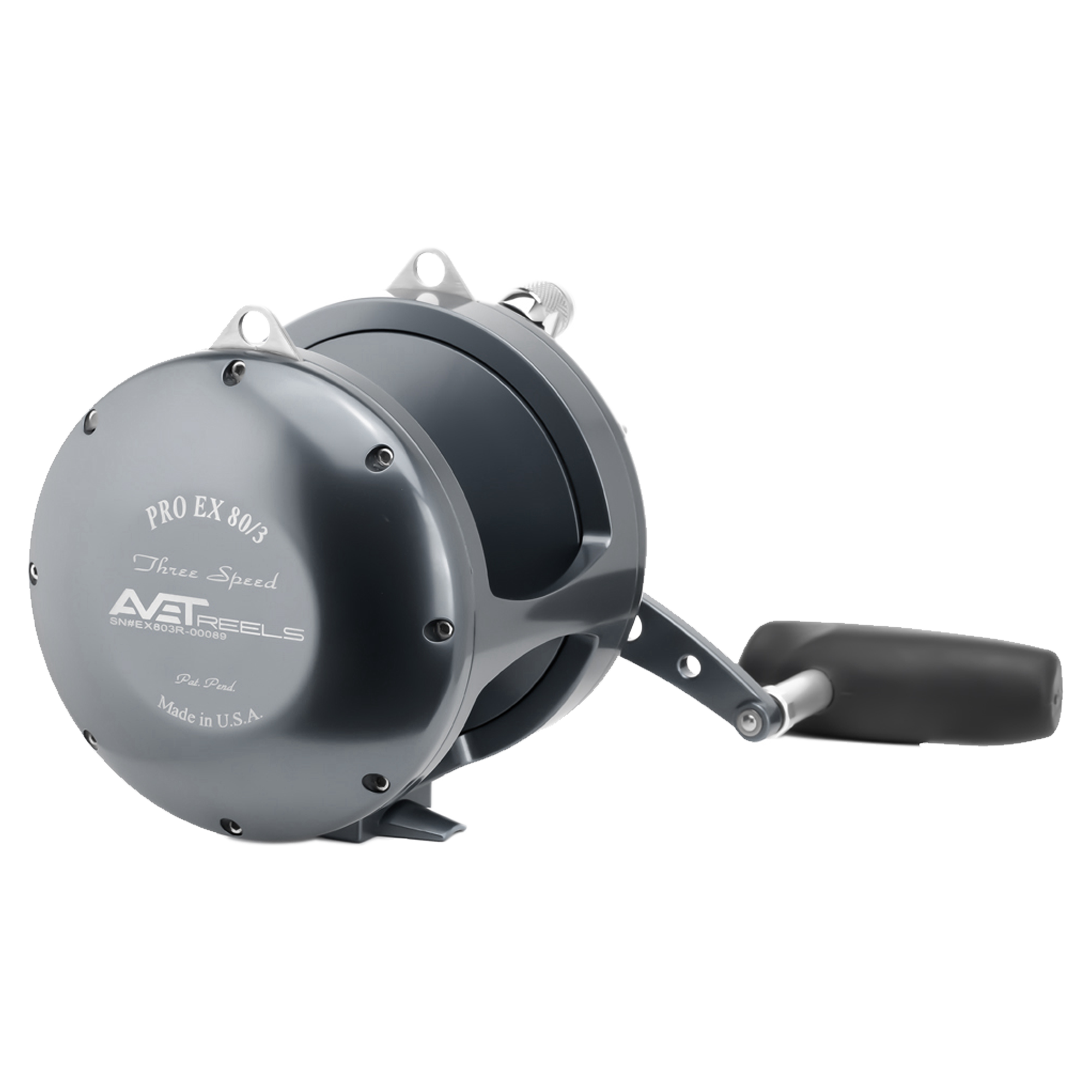 The Avet Pro EXW 80/3 Three Speed features Avet’s 3-speed shift performance mechanism that permits shifting through high, medium, and low gears without removing your grip from the handle. Super quick high gear for clearing trolled lines quickly, perfect for the kit, Medium gear is a perfect ratio for fighting those tough fish. Extra strength low gear when brute winch power is needed. Avet Pro EX Series Reels are built to take the punishment that those big game fish give out. Avet Ex Reels feature a topless design for casting ease and thumb control for live bait applications. One Piece machined aluminum frames, 6 stainless ball bearings and heavy duty carbon fiber drag.