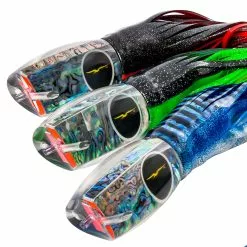 The Black Bart Blue Breakfast is just as its name indicates, the Black Bart Blue Breakfast is a scaled down version of the Black Bart Breakfast, specifically formulated for the elusive Tu Tu. Invert face and dual jets. This lure works excellent when ran in short corner and short rigger positions. Approximately 18″ in length, best rigged with 12/0 hook.