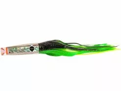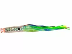 The Black Bart Crooked Island Candy makes for the best Wahoo fishing you ever experienced, high speed, and any speed, this is the one and only, the very best Wahoo lure ever. Troll Crooked Island Candy on 400 lb+ mono or cable leader, hook size should be 11/0. You can troll this deep swimming flash & glow heavy weight Wahoo lure along with its other three family members, San Sal Candy or Rum Cay Candy or add to the line up the Wahoo Candy lure and you will have a Wahoo spread that will please you beyond any spread you may have ever tried. From the very first day you should see and realize the advantage you will have gained by trolling these dangerously perfect Wahoo lures. ENJOY!!! This lure works excellent when ran in all positions. Approximately 14″ in length, best rigged with 11/0 hook.
