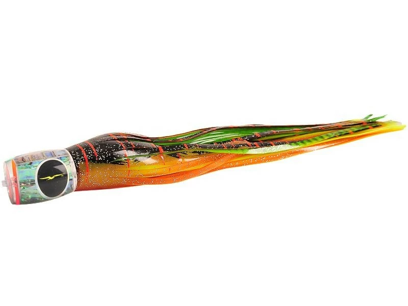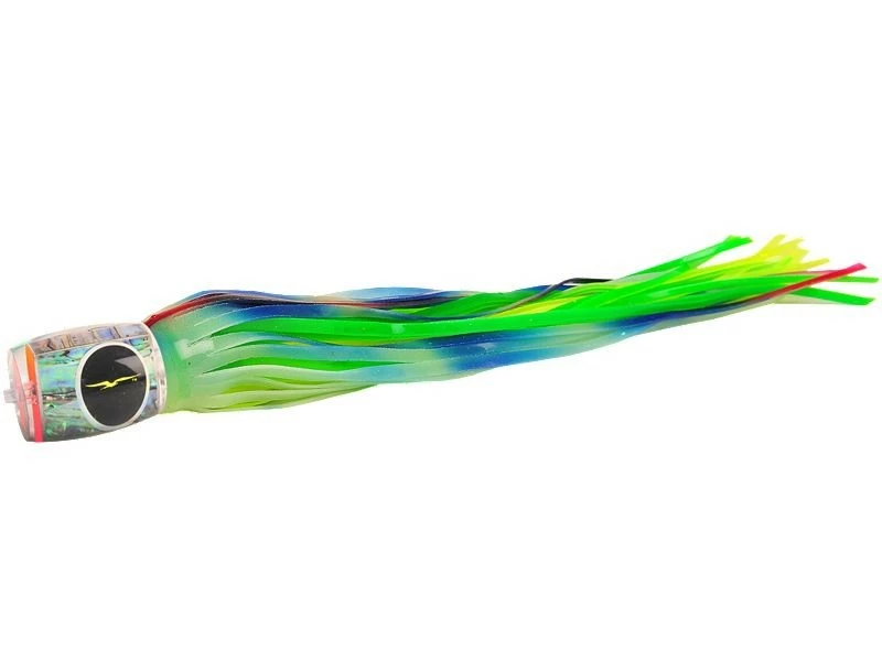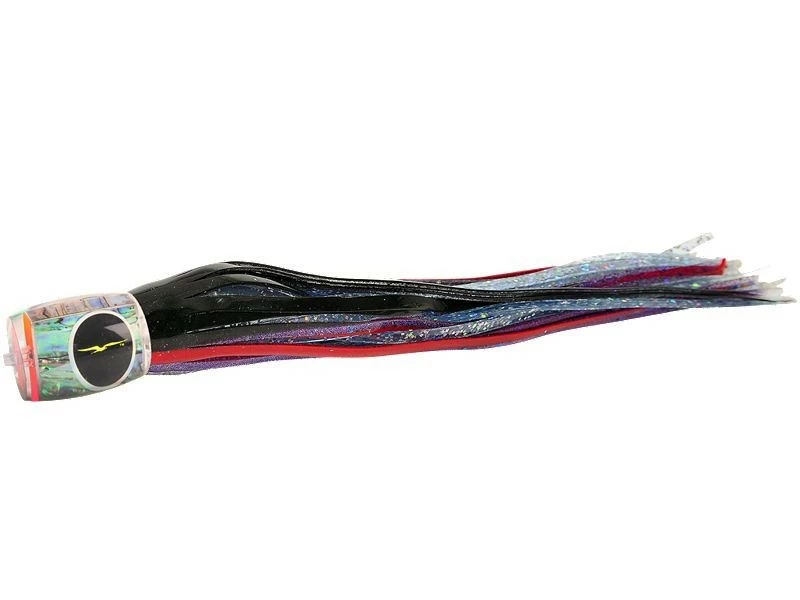 The Black Bart Marlin Candy is a smaller version of the Black Bart Grander Candy. This rigger bait runs deep and leaves an unbelievable trail of white water in its wake. Black Bart Marlin Candy might be the single best Blue Marlin lure in the Black Bart Lure Range. Not Only does it appeal to smaller 150-300 lb. Marlin but also to the big girls. It’s this ability of the Marlin Candy to perform that has made it a favorite among Black Bart lures. This lure works excellent when ran in long corner and long rigger positions. Approximately 14″ in length, best rigged with 11/0 hook.