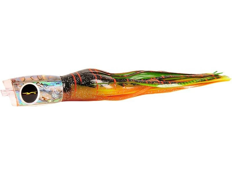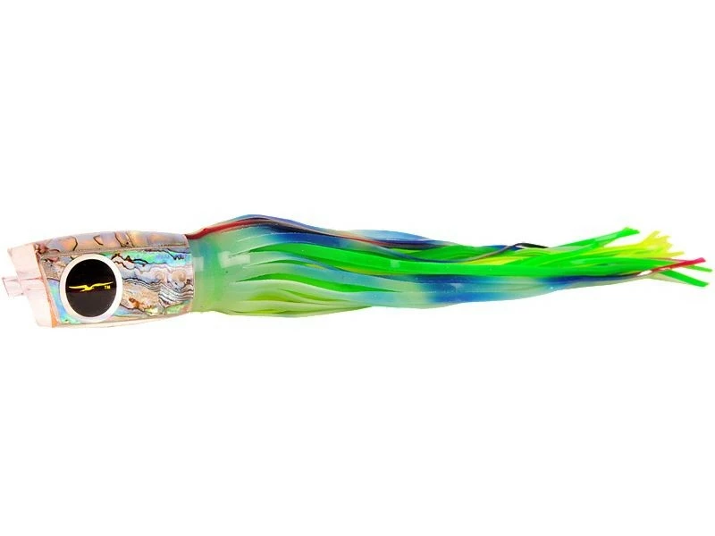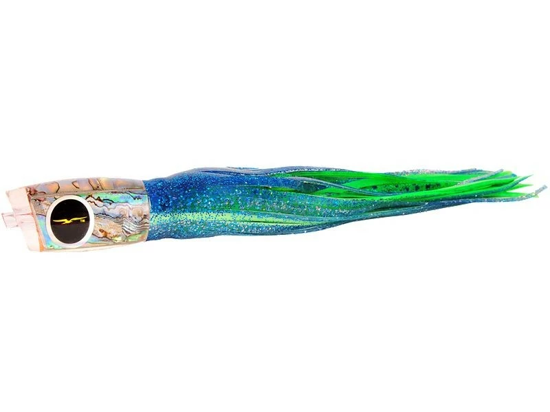 Black Bart’s Mini 1656 Angle Face Lure is Bart Miller’s number one choice in a lure, if he had to pick one to use for the rest of his life. Proven results on Marlin, big and small. The hottest lure for striped Marlin off Southern California last year! This lure works excellent when ran in long corner and long rigger positions. Approximately 11″ in length, best rigged with 10/0 hook.