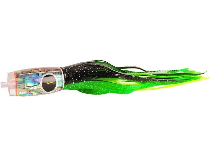 The flat nosed version of the Mini 1656 Angle, the Black Bart 1656 Flat Face runs deep with a very smooth torpedo action. Tracks quite well when trolled from the rigger positions. This lure also works excellent when ran in long corner and long rigger positions. Approximately 10″ in length, best rigged with 9/0 hook.