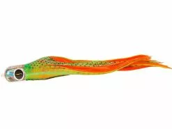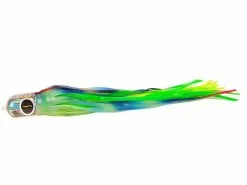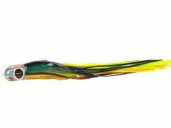 The Black Bart Punisher will keep your neighbor wondering what in the hay you’re doing, no one can be that lucky. Troll Punisher in the long outrigger or shot gun position, that is all you have to do, it is just that simple, 9/0 hook, 400-500 lb. leader. All weather, all species, very hot Marlin lure, Dolphin, Tuna, Wahoo, Sails, Whites and Stripes all love this simple to troll semi top water injured fish easy to catch mouse trap rig. Predators fall prey to this old pro trick, the same will work for you, go ahead Punish your prey with the Punisher. This lure works excellent when ran in short rigger, long corner and shotgun positions. Approximately 10″ in length, best rigged with 9/0 hook.