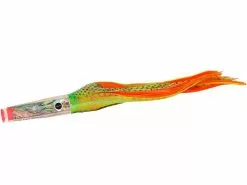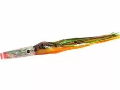 The Black Bart Rum Cay Candy is in all its glory, destined to be a killer classic lure, taking fish quick if they are in the area, fish like Tuna of all types & sizes, White Marlin, Stripe Marlin, Blue Marlin, Wahoo, Dolphin, Spear Fish, Sail Fish, this slender profile lure, with cupped narrow nose, tapered body, hex back is the new guy on the block that everyone is talking about. 9/0 double hook, 200-300 lb. leader, trolls perfectly in all weather, all positions, all trolling speeds, This new concept lure has been tested by Black Bart and others to troll down and stable at 26 knots with no additional torpedo weights. Troll this great new Hot-Rod lure at any speed that you are comfortable with, your Wahoo fishing will never be the same. Sound to good to be TRUE, then find out for yourself! This lure works excellent when ran in all positions. Approximately 12″ in length, best rigged with 9/0 hook.
