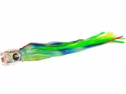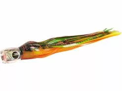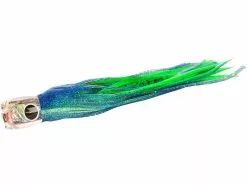 The Black Bart St. Thomas Prowler is an amazing mid-size trolling lure with its jet-holed concave head. A lure that performs best from the riggers and in all sea conditions. Its deep swimming action makes it especially productive when placed near an aggressive-action lure. Producing very high hook up ratios when properly rigged with an 11/0 double hookset. This lure works excellent when ran in short rigger and long rigger positions where the added lift of being run from the rigger allows this lure to dive, chug and pop. If your looking for an easy running lure that requires little tuning throughout the day, the St. Thomas prowler from Black Bart lures is a top pick. Also deadly on large tuna as it’s straight swimming style makes an easy target. Approximately 13″ in length, best rigged with 11/0 hook rig either in single or double hooks. Available in these proven colors or custom rigged in any skirt color combination you can think of.