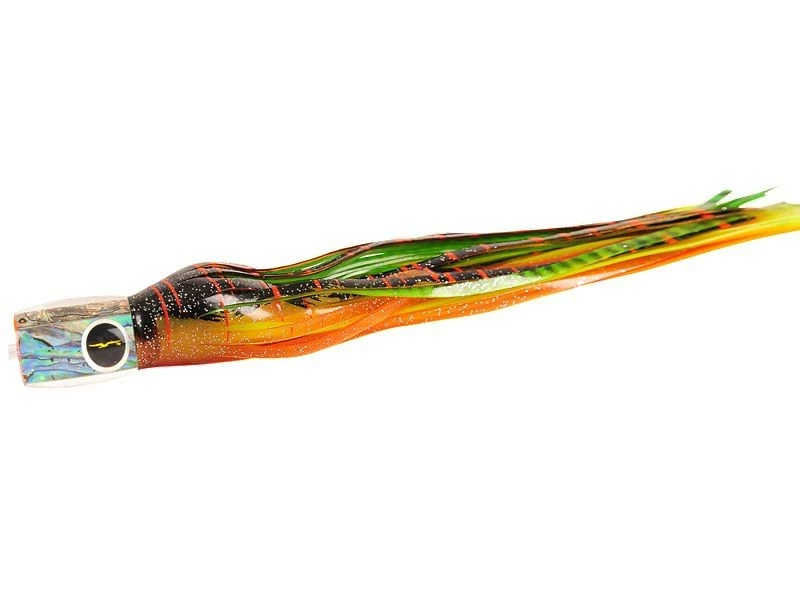 The Black Bart Striper Candy is an extremely easy lure to troll in all conditions. The Striper Candy is the perfect heavy tackle lure when targeting Striped Marlin, combining ease of use, solid hookups, and proper trolling action. This lure works excellent when ran in all positions. Approximately 12″ in length, best rigged with 10/0 hook.