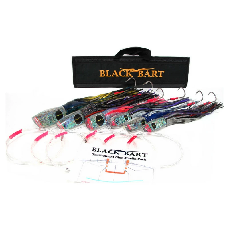 This Black Bart Tournament Blue Marlin Lure Pack is a very serious competition spread whether you are hunting a fun weekend of fishing or seriously hunting a personal best, world records, or tournament competition. Know that you are holding a winning hand, fish them with an Attitude! These packs come pre-skirted in Captain Bart Miller’s most productive colors!