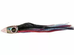 This bullet lure is sized to perfection and carries all the classic shape of the best bullet lures Capt. Black Bart has ever trolled. Wicked is as the name applies, this is a hot semi top water injured fish movement lure that has been working for half a century around the world! All weather, all species, all positions, all tackle, 200-300 lb. leader, 8/0-9/0 hook excellent for Tuna. Try Black Bart Wicked in the center rigger or just play this fishy lure long, there is no gambling left with this long time tried, true and proven, no brainier lure. Wicked is a winner! This lure works excellent when ran in all positions. Approximately 10″ in length, best rigged with 8/0 hook.