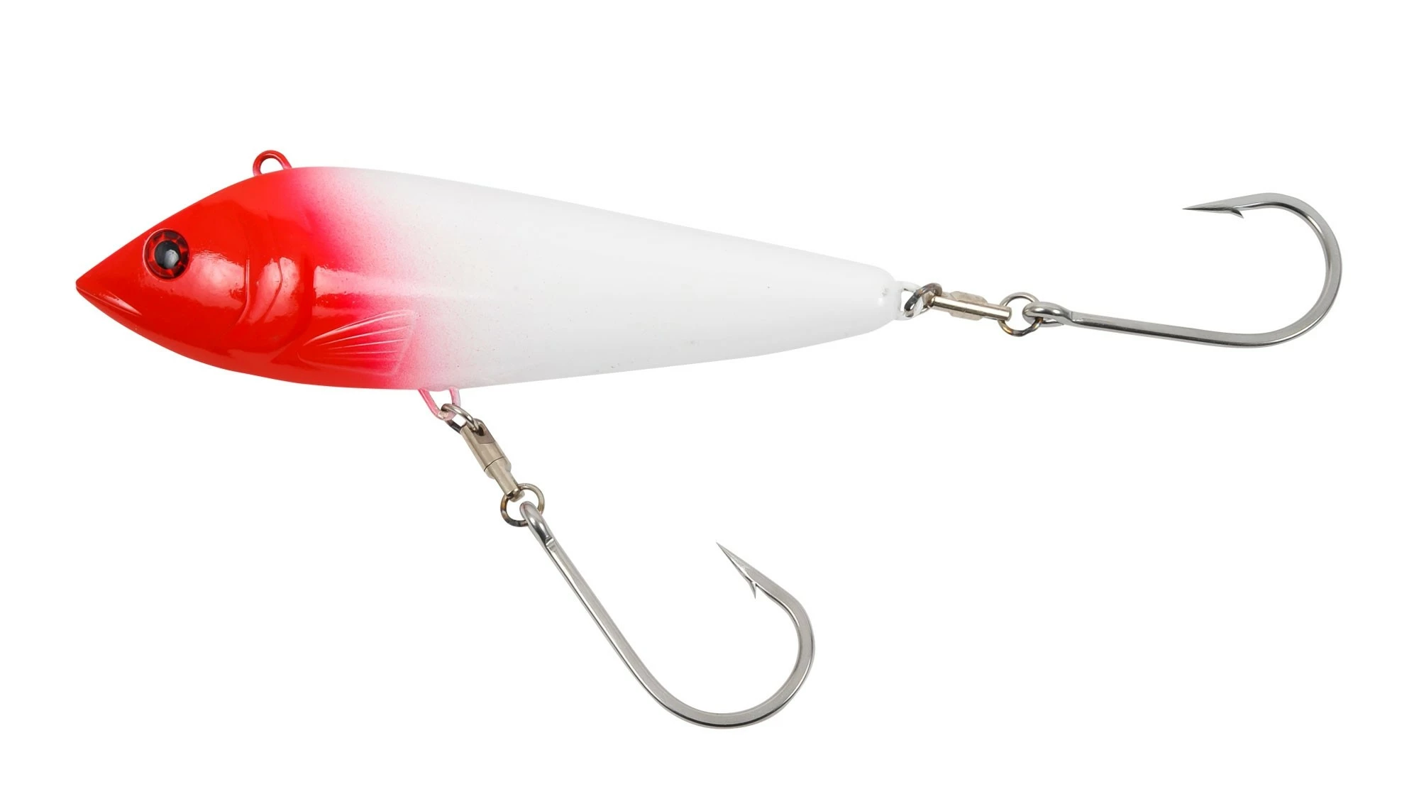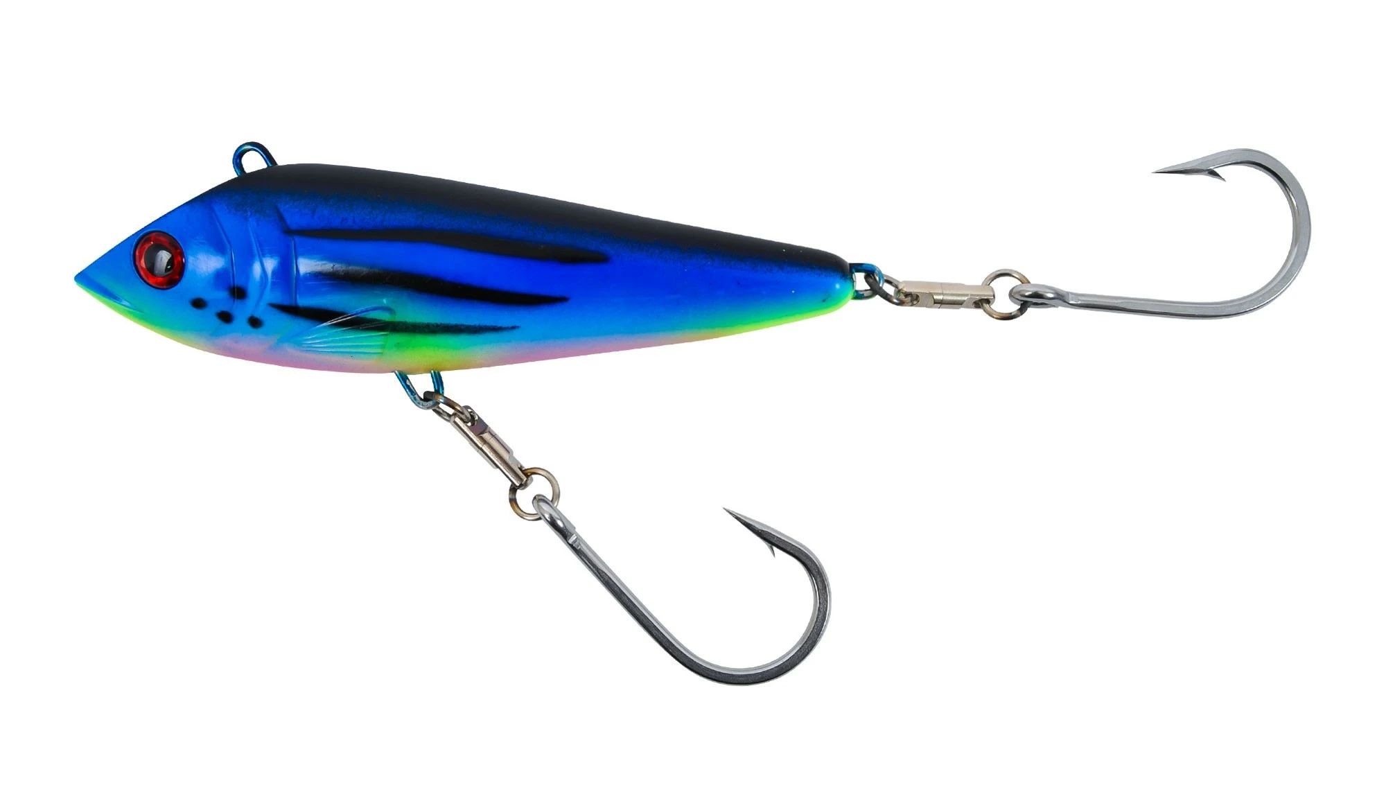 Braid Marauder Trolling Lures also known as wahoo plugs, these baits became popular on the San Diego Long Range scene for bring wicked bites from Wahoo. Trolled close to the transom at up to 12 knots these true running plugs have made their place not only for wahoo, but for tuna, dorado, and marlin as well. They run best when rigged with clip to the trolling eye. Ball bearing swivels on the southern tuna shape hooks keep the fish from using the lure to lever the hook out.