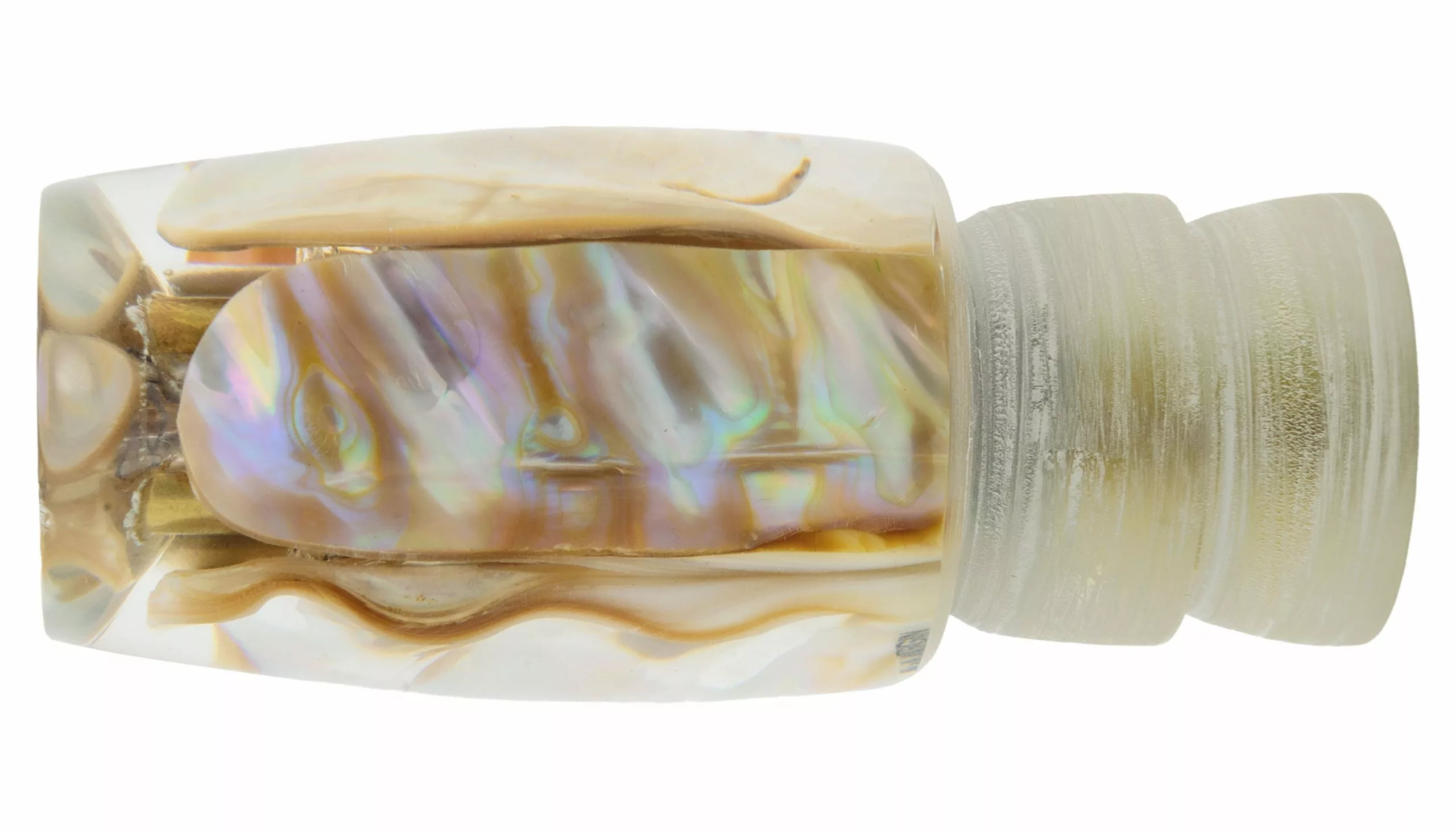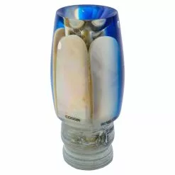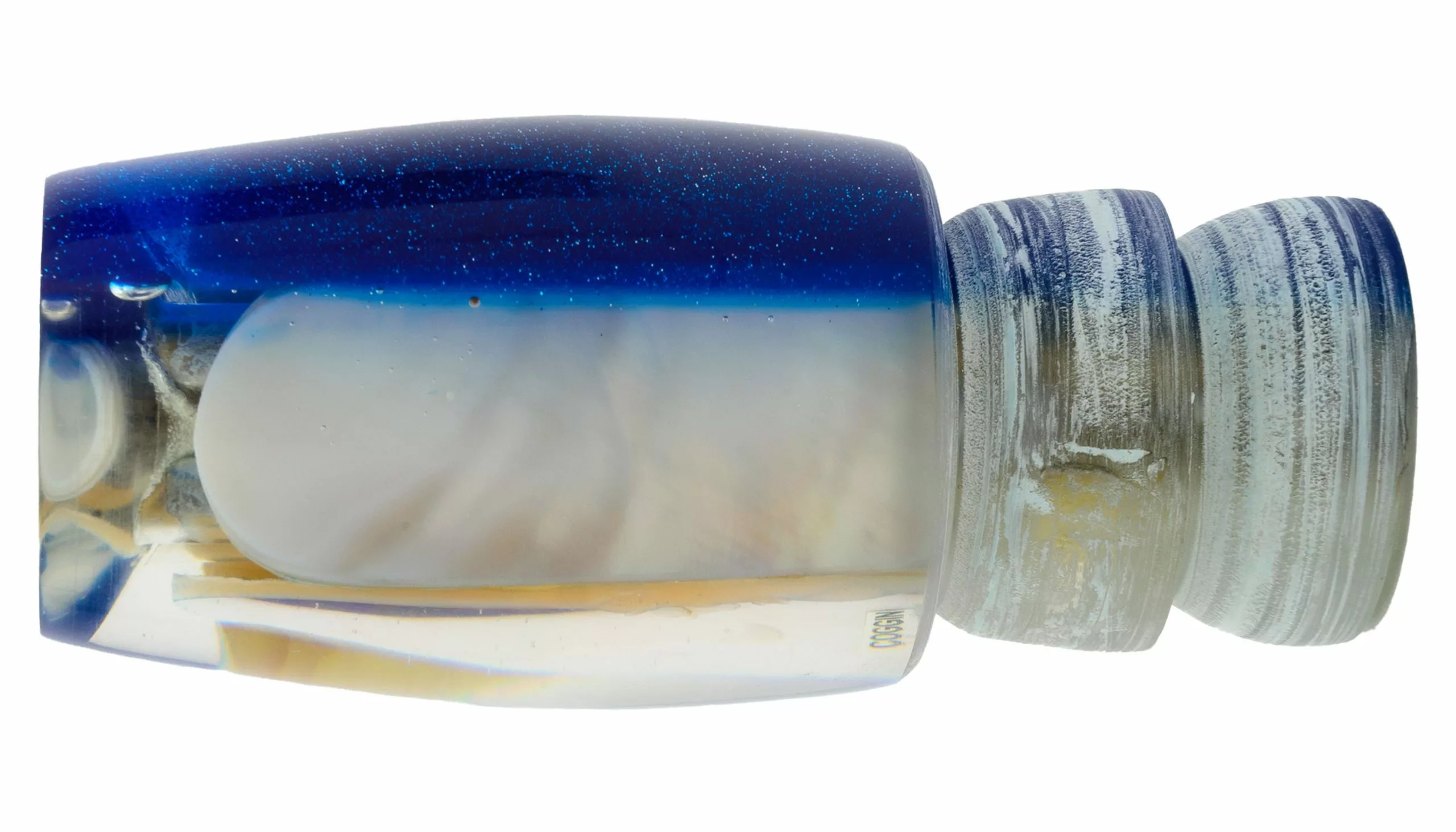 The head of the Coggin Medium Copa Invert is a half inch shorter than that of the regular Copa Invert. A bit more stout and just as effective in rough waters. Mother of pearl inserts and hand assembled brass jets round out this quality trolling lure.