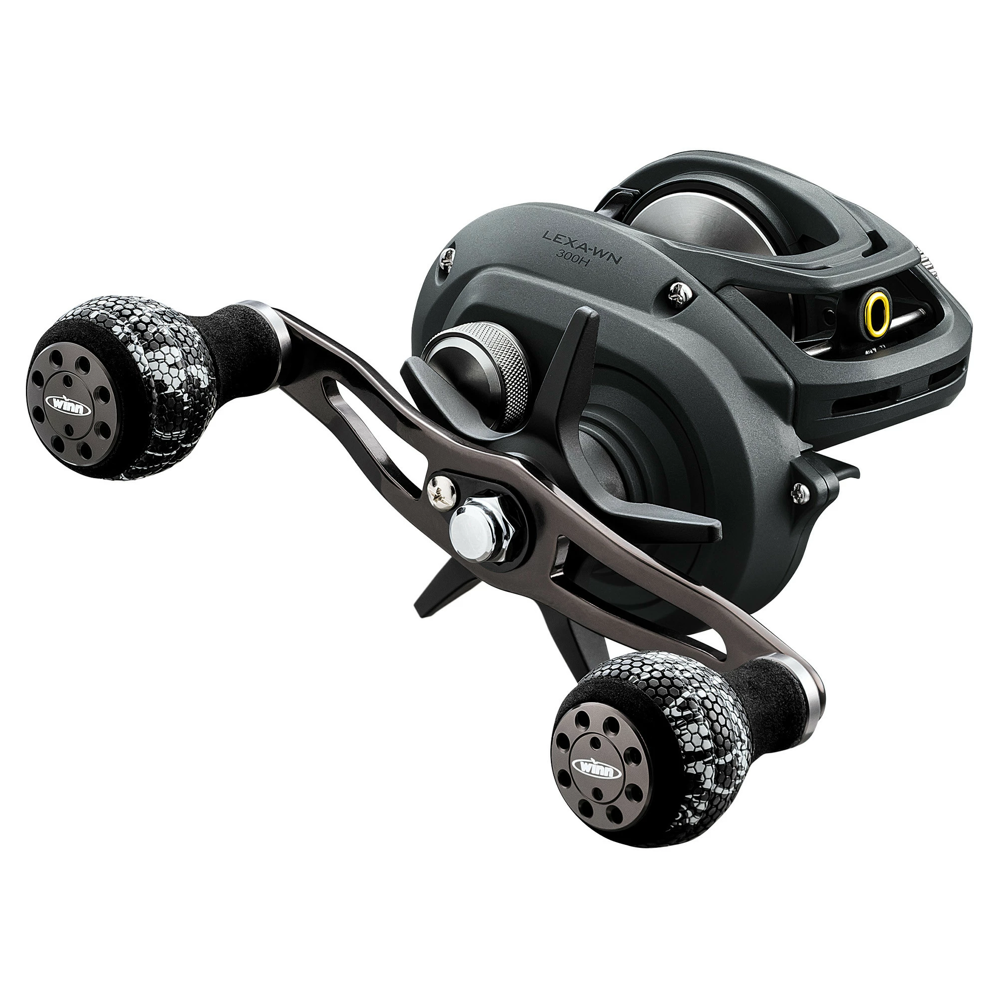Delivering all of the power and performance that anglers have come to expect from the Lexa series, the Daiwa Lexa WN 300 & 400 Casting Reels offer even more comfort and control with the addition of custom Winn Grip handles. Built to handle just about anything, the Daiwa Lexa WN 300 & 400 Casting Reels utilize Daiwa’s Ultimate Tournament Drag that outputs 22lbs (300 Size) 25lbs (400 Size) of max drag, giving anglers true stopping power.