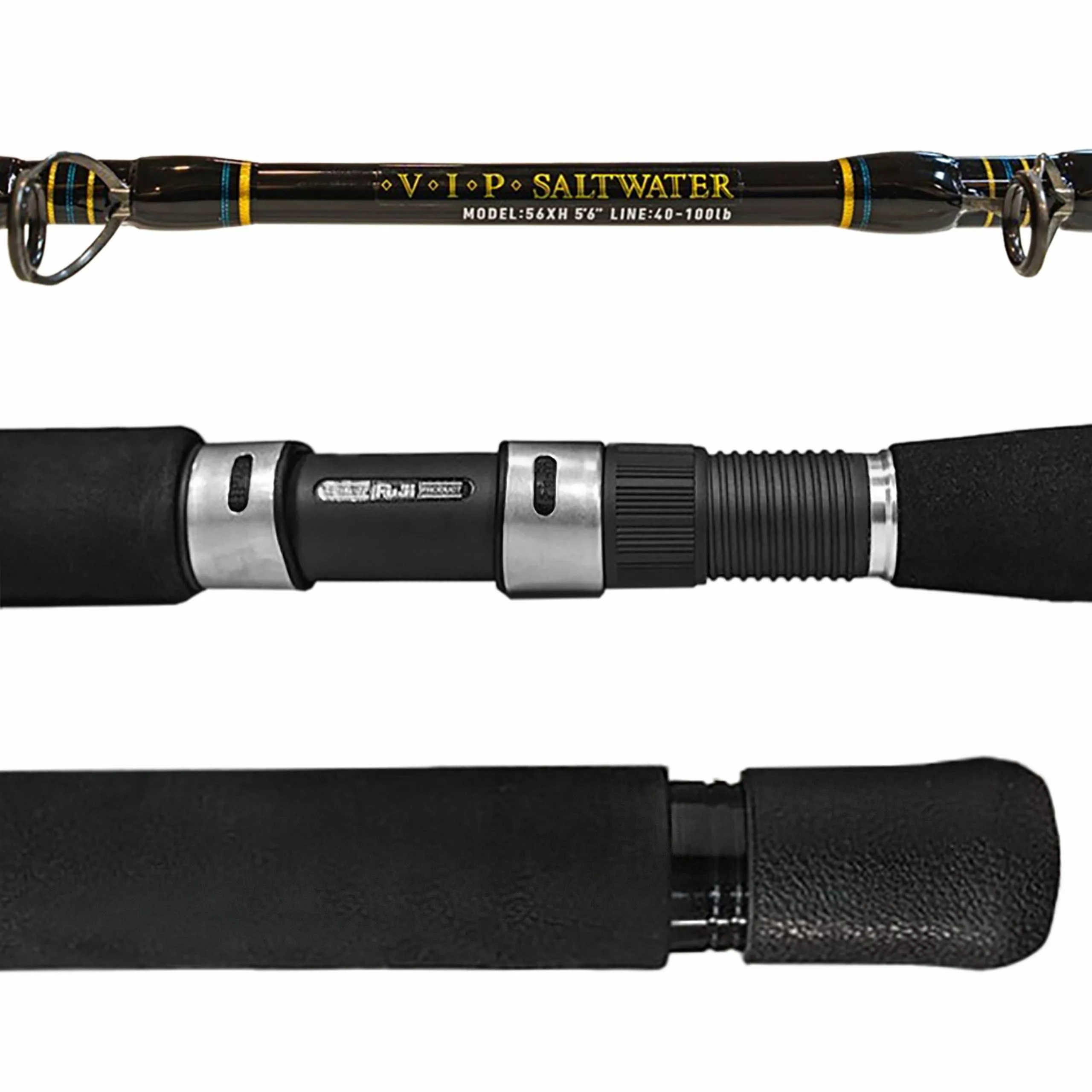 Daiwa VIP-A Saltwater Stand Up rods feature rugged E-glass blanks and Fuji reel seats.