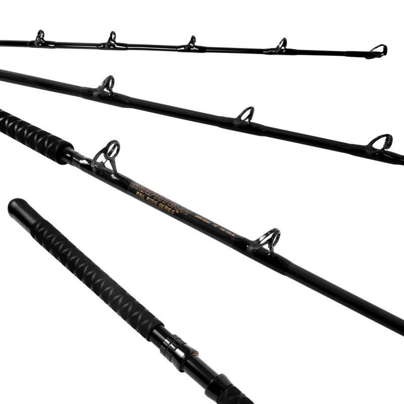 The Graftech Railrods are designed for tackling large Yellowfin and Bluefin tunas, so they are built extra tough. These rods are designed by Rick Ozaki are built with quality and great components, such as the aluminum reel seat and heavy duty guides. These are comparable to Calstar railrods, but at a lower price range, so it allows you to put some extra purchasing power towards a higher end reel (and have a rod that can take full advantage of it).