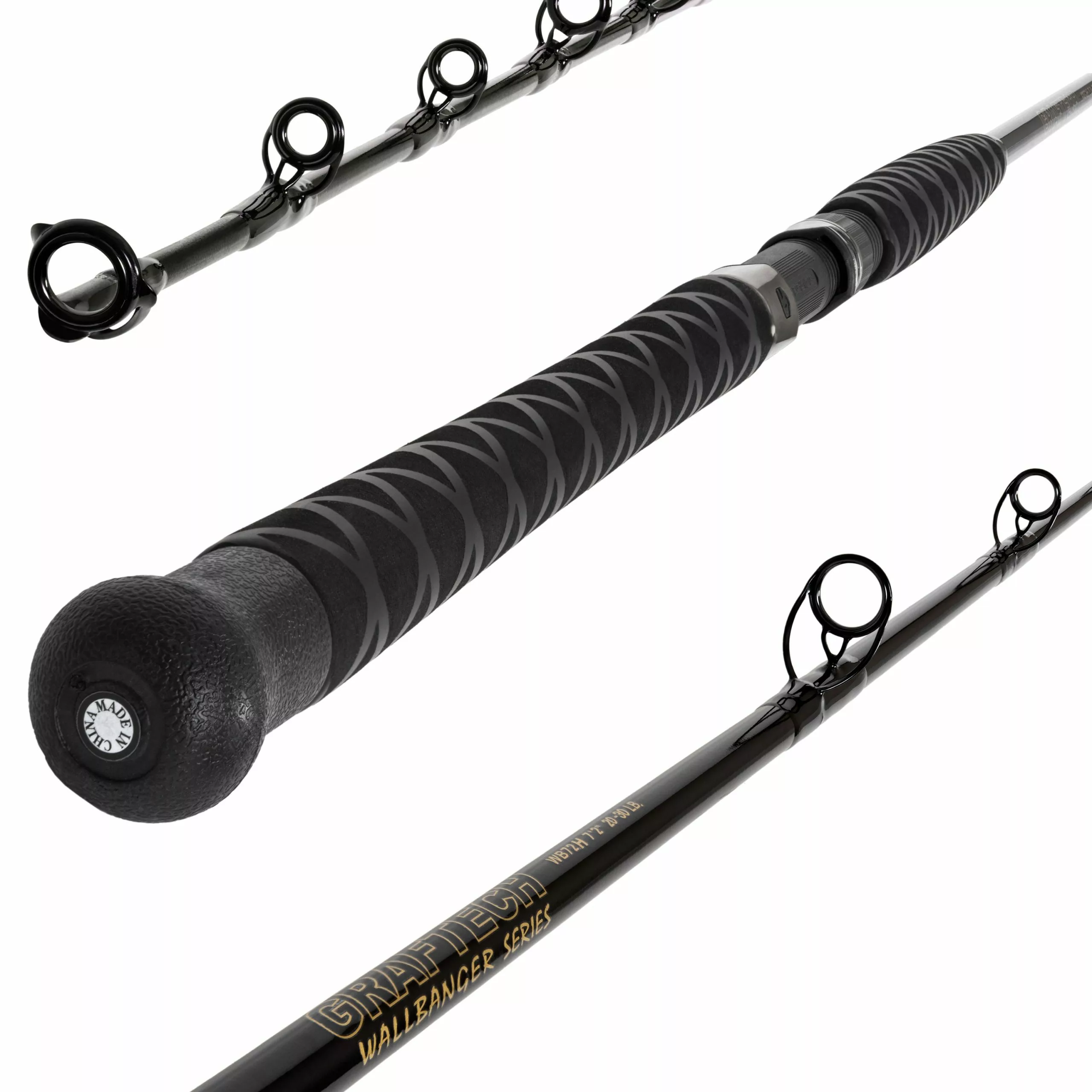 Graftech Wallbanger Rods are 7’2″ with line ratings between 12 to 30 lbs. The unique taper and designs of each model are ready to tackle the most vicious species. Lightweight yet powerful, these graphite rods are sure to up your game.