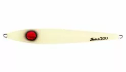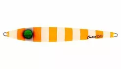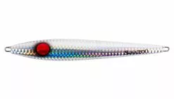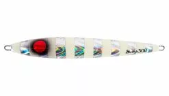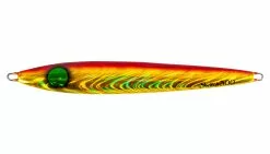 A new concept of all-around vertical jig with sliding fall action, great for jerking in a variety of speeds depending on activity of the fish. The semi-center balanced toward the head and asymmetric body creates a wobble and vibration fish cannot resist. An angler may choose to work the jig on a fast pitch jerk to create a darting/sliding action or a slow pitch jerk to move the jig to a horizontal position, which allows the jig to swing more side to side mimicking dying bait fish.