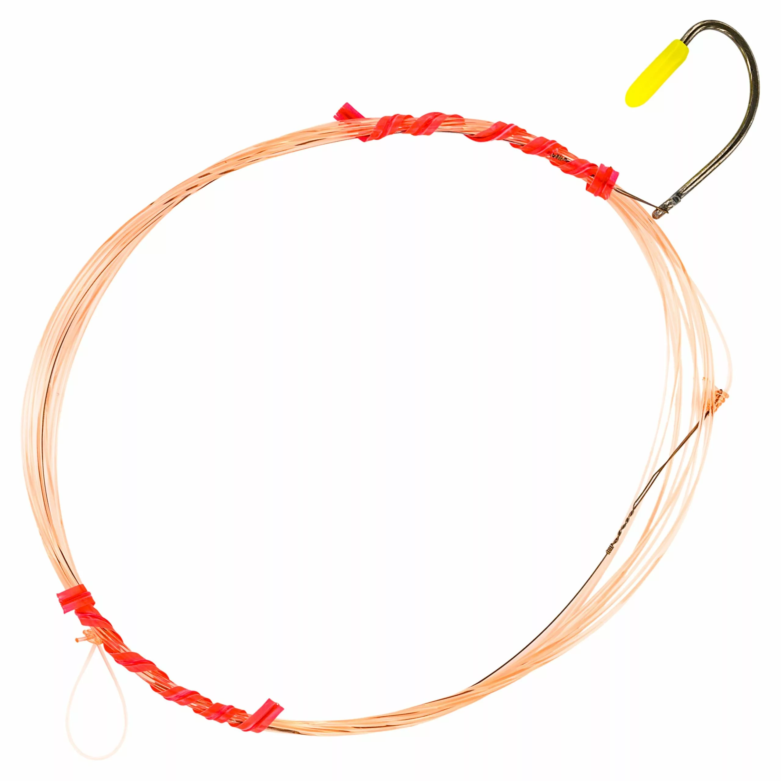 Don’t waste fishing time making leaders, let us do it for you. Just clip the loop on the Bob Lewis Stage 2 leader to the snap swivel on your fishing line and you’re ready to go! Remove the yellow cap before baiting your hook. CAREFUL, the hook is sharp. When used with our Stage 1 Float Leader your total length will be almost 15 feet.