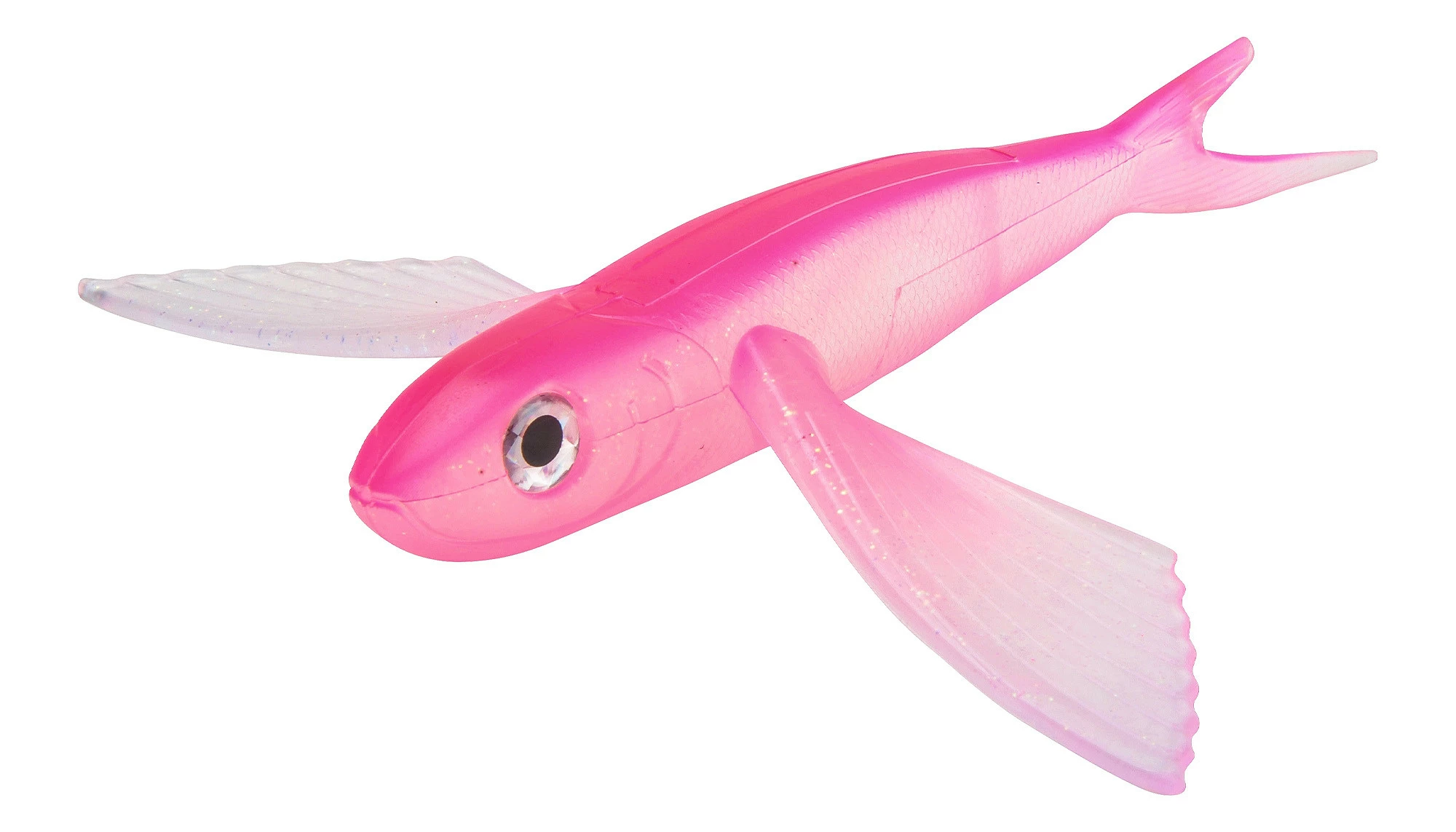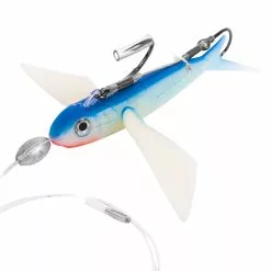 Maguro Tackle Flying Fish are the hottest flyers for offshore Tuna and Dolphin. Unique to Maguro is it’s one piece wing and body, unlike the competition that has wings glued on (that will eventually come off). Maguro Flyers are made from a single mold ensuring durability and longevity. Tough construction ensure that this lure is more than a one hit wonder. Flown from the kite or trolled by itself or in a daisy chain, the Maguro Flyers are deadly on all tuna and pelagic gamefish. Firmer body material ensures this lure skips and trolls properly and presents the most life-like Flyer out there. A Flyer running for it’s life from a Tuna! Features leader hole in the nose and enlarged hook cavity for large offshore hooks and or lead weight placement.
