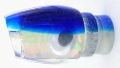 Due to the sharp rear taper and short overall length of the Marlin Magic Bog Eye, the action is very tight, producing a side to side wobble and shimmy. The Bog Eye boils violently before plunging below the surface, pulling with it a huge bubble trail. Head from end to end (without skirt) is 4″. With Skirts they run about 15.5″.