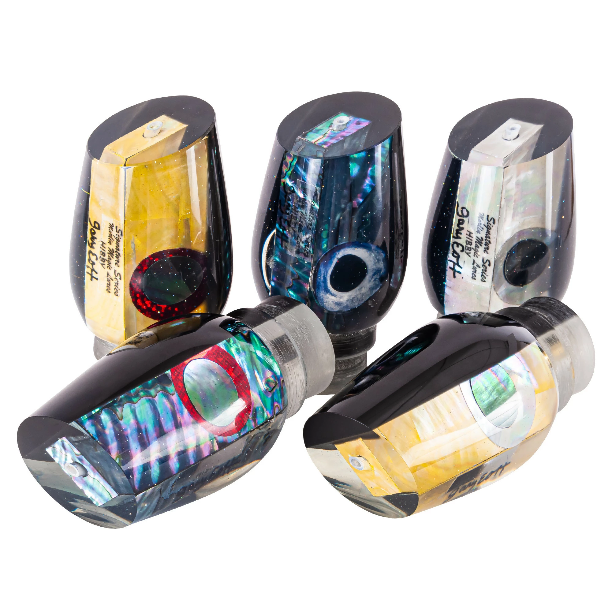 Let’s bring her back to LIFE! The original Captain’s Choice is back! The Hibby, short for Hibbard, is named after Kevin Hibbard, and it is based on the Captain’s Choice. Hibbard had to retire his Captain’s Choice that was made in 2007, as one of its eyes became filled with water and never ran the same after. Hibbard wanted a new lure that resembled his favorite. And so, the Hibby was born. The Hibby is a new shape made by Gary Eoff, the master lure maker of Marlin Magic Lures, and is part of the Signature Series. This lure is top dog in any angler’s arsenal and gets bites in almost any position because of its pear shape. Its angled face and unique shell eye enables the lure to catch attention and perform in any sea conditions, it surely will not disappoint.