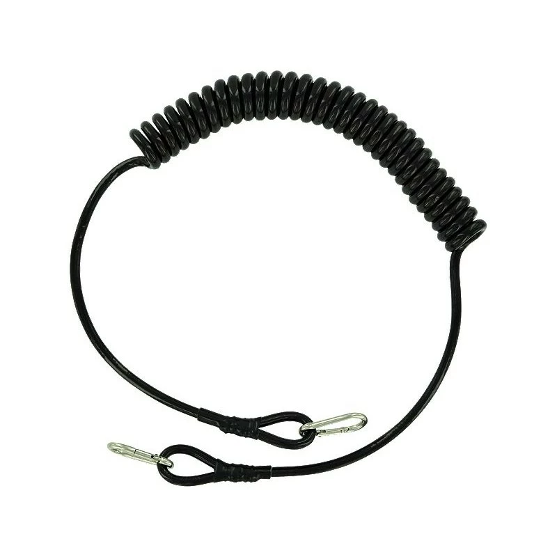 Coiled Safety Line with Stainless Clips extends to 10ft. and keeps your cockpit clutter free. Stainless steel clip fastens to the rod or reel to protect from going overboard!