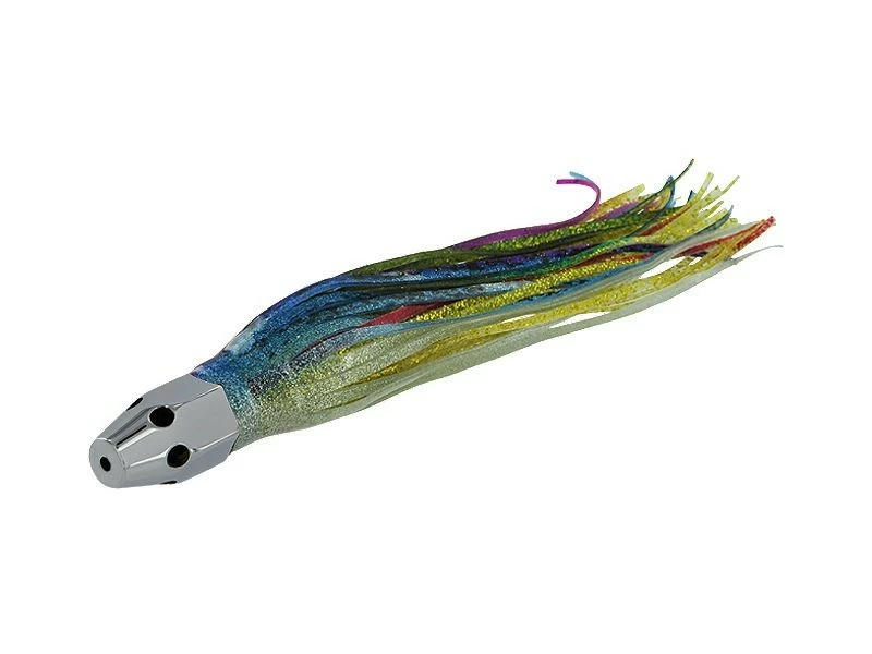 The Melton Pusher Jets are bonafide Tuna magnets. This lure rides high in the water, often skittering across the surface, an action giant Tuna simply cannot resist. If you’re chasing Tuna over 200 lbs, don’t leave the dock without a Pusher Jet in your arsenal. We have preselected our hottest “catching” colors for you below but all Melton Pusher Jets are available custom skirted in your choice of colors.