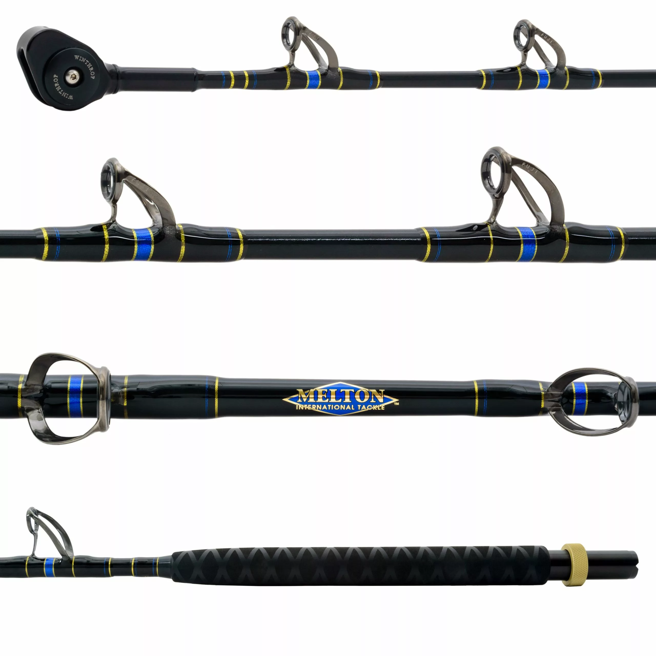 The new Melton Tackle Velocity series of rods are specially built for high-speed trolling (HST) for Wahoo. They feature a durable glass blank, Fuji HB Silicon Nitride guides and a Winthrop roller tip. Built with a #4 ferrule, these rods pair best with 50W-80W sized conventional reels and Hooker and Lindgren-Pitman Electric reels.