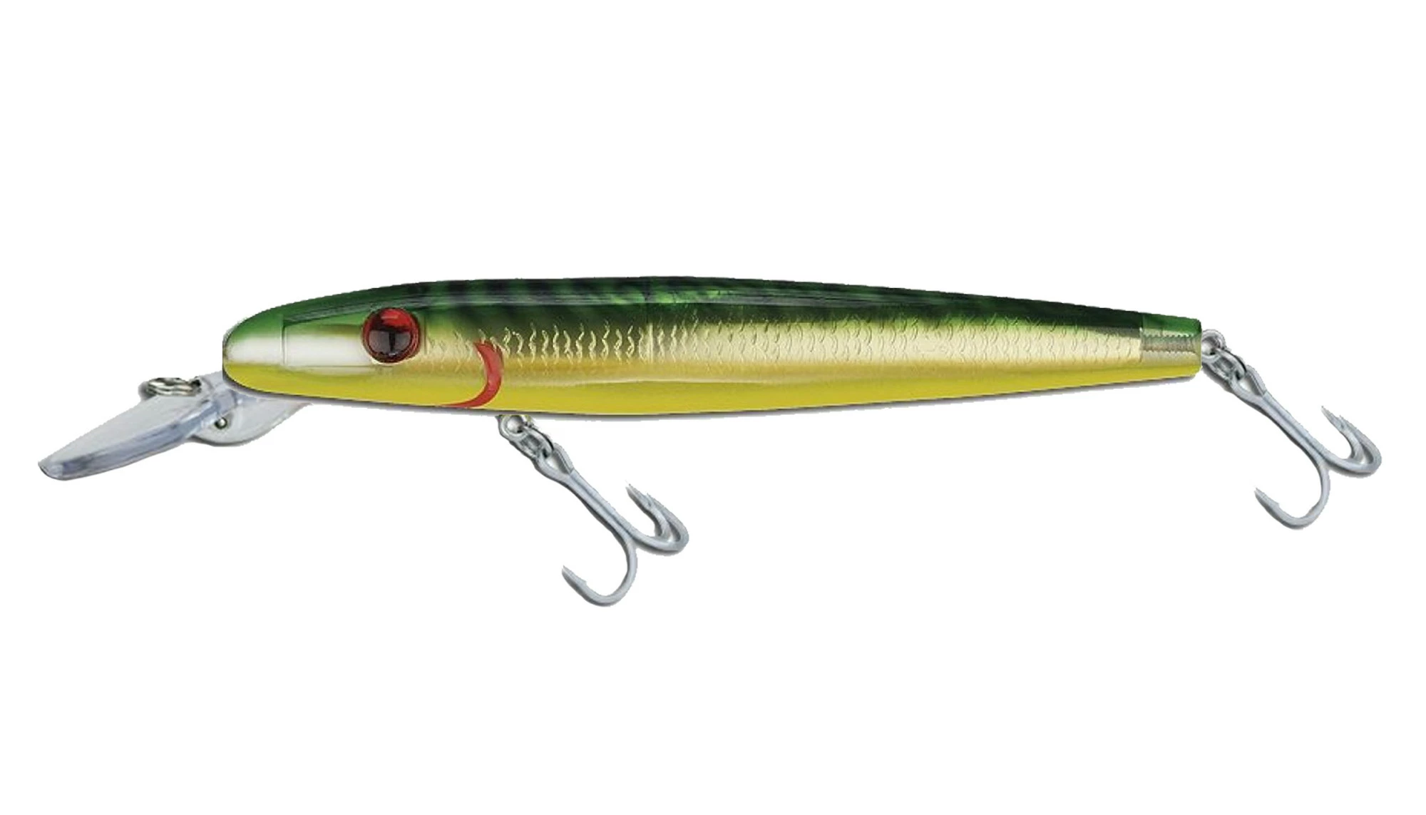 Big Game 111MR floater-divers (7″/2 1/8 oz.) can achieve depths of 25 feet or more. Features a tight wiggling action which can be pulled up to 7 knots. Lure will achieve deepest results at 3 to 4 knots with 125 to 150 feet of line.