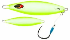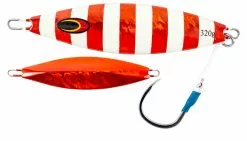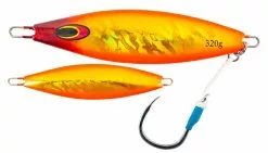 The Buffalo is a Slow Pitch Jig, or often called a flatfall jig. It is center balanced and will fall with a fluttering action enticing the fish to strike as the lure falls. It is ideal for sinking through schools of tuna hanging deep, or using for reef species hanging down deep when worked with long slow flicks of the rod. The Buffalo comes rigged with a super strong and super sharp BKK assist hook rigged on the tail of the jig to assist with the slower fall rate. One of the most effective jig styles imaginable.