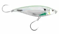 Styled on the typical deep bellied baitfish that are so prevalent all over the globe, the Nomad Madscad has been designed to be effective in all environments, in a range of sizes for a huge variety of species. This design has been refined over years of testing and many prototypes along the way. The subtle features like the flattened top of the head, to the scalloped sides and small tail wings all combine to make the action on this lure truly dynamic. The Madscad sinks level, and actually wiggles much like a small stick minnow one would use for bream. It has an erratic swimming action when twitched, producing a pronounced thumping side to side darting action. You can employ a straight retrieve as well, which will give a more subtle swimming motion. The fast sinking 190mm/160g version can even be trolled at 15 knots. The larger sizes are ideal for tuna, GTs, mackeral and kingfish, with the smaller sizes ideal for all sizes and shapes of reef dwellers, tuna, smaller trevally, salmon, kingfish. You name it and it’s probably been caught on a Madscad. By far the most popular shape in the Nomad Designs range, the Madscad is just the must-have lure for so many fisherman. Built with the same HD ABS plastic, foam filled body and machine stamped metal plate on all Nomad Design lures the 190mm and 150mm sizes are tough enough for any bluewater predator. No more ripped out hook points or busted lures with Nomad Designs. ​All Nomad Design Lures come fitted with the highest quality super strong BKK hooks, chosen to balance perfectly with each lure, and provide exceptional swimming actions and hookup rates for all species. Nomad Design Lures can be fished straight out of the box with confidence. The Madscad 190mm Deep sinking stickbait is designed for long distance casting or fast trolling and big fish. It will sink fast and get down to where the fish are hanging, and can be worked slow or fast with long or short twitches of the rod tip. A stop start retrieve creates an erratic swimming action that fish simply cannot resist. It can also be trolled at up to 16kn when rigged with a larger treble on the belly and the standard single hook on the tail. It is ideal for wahoo, tuna, albacore, kingfish, Giant trevally, cubera Snapper, roosterfish and many other species. Mackerel, Tuna, GTs, Kingfish and all shallow reef species. Featuring a machine-stamped stainless steel plate and full body foam core construction, it is one of the toughest lures available, and is up to any challenge.