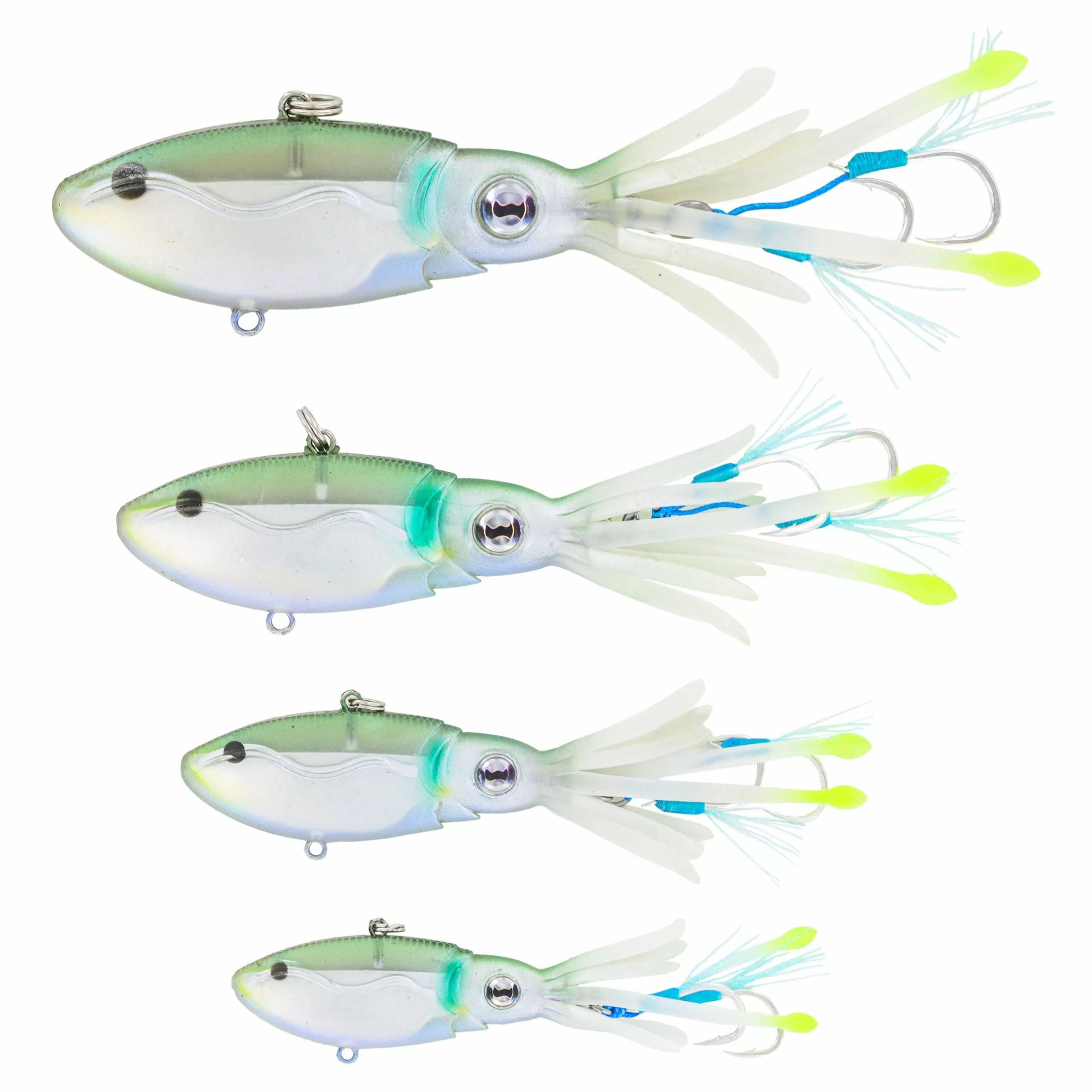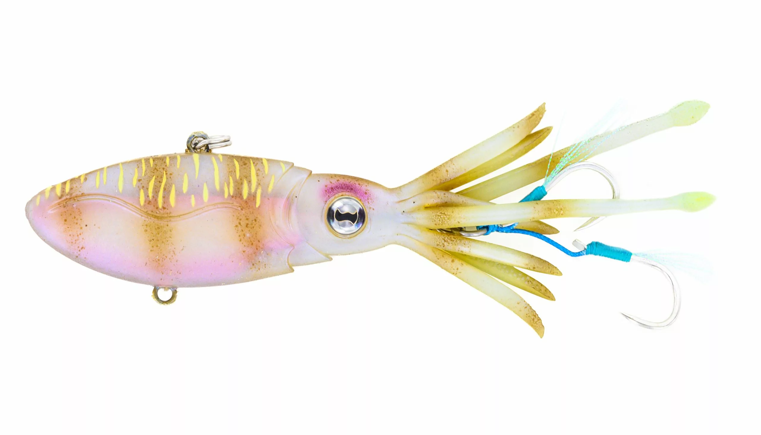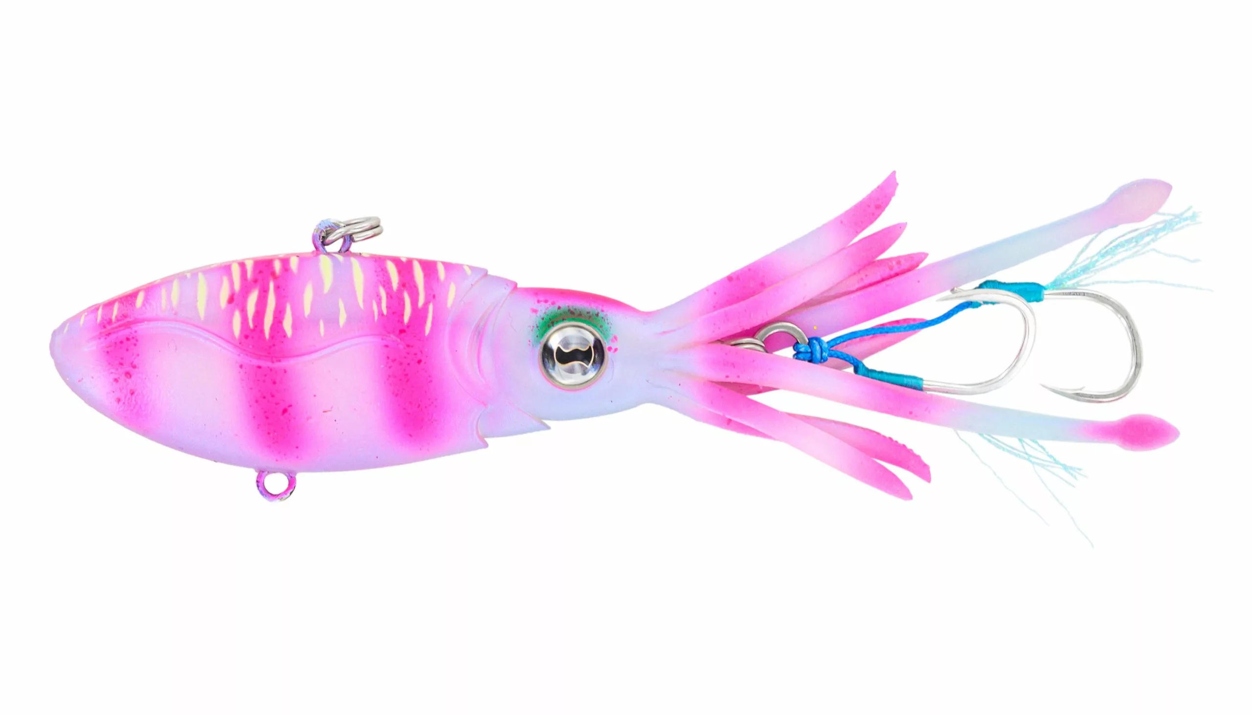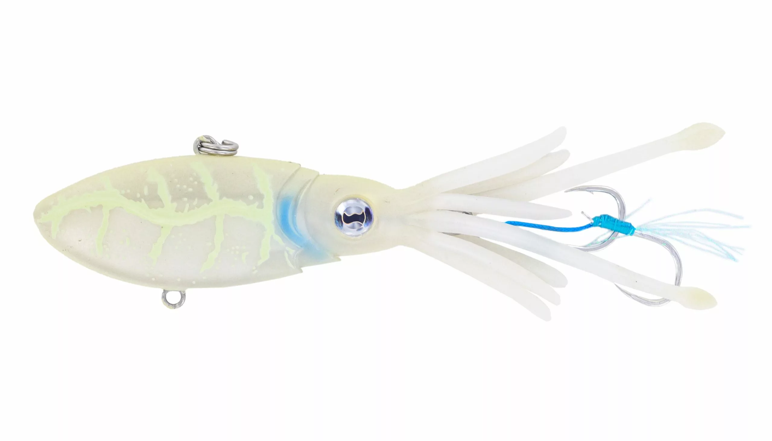 The Nomad Design Squidtrex uses patent pending technology to combine a soft vibration lure into a squid-shaped body to produce a unique action designed to trigger bites. It can be jigged, vertically cast, or even trolled. The soft TPE construction allows strength and durability matched with realistic movement of the tentacles which waft and wiggle in the water to entice bites when sinking or even at rest.