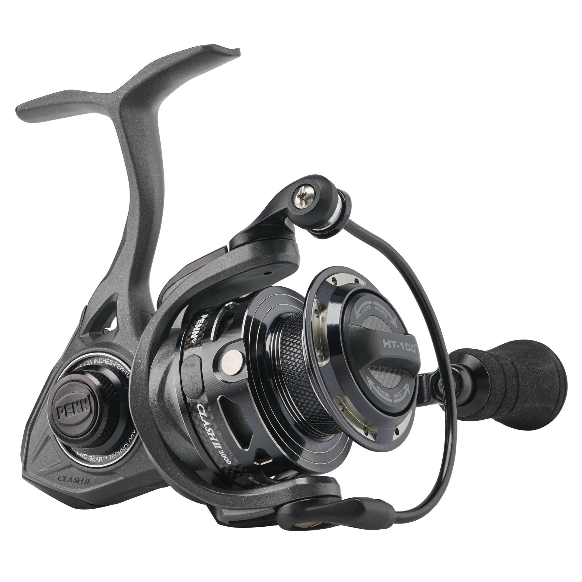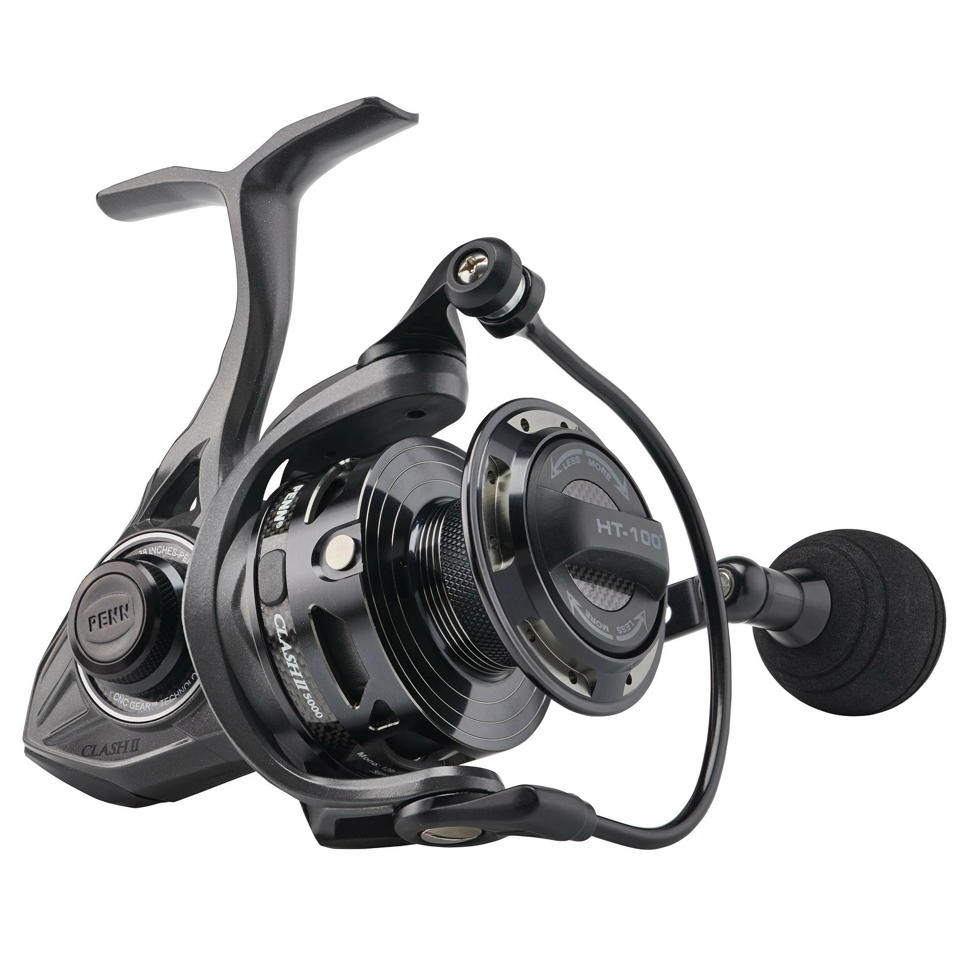 The PENN® Clash™ II is the ultimate inshore reel. Featuring our proprietary CNC Gear™ Technology and HT-100™ carbon fiber drag system, the Clash II can handle any inshore species you hook. The Hydrophobic Line Roller Bearing, along with the Clutch Armor System ensure protection to critical components in all weather conditions without sacrificing weight,while the Leveline® Slow Oscillation System ensures perfect line lay, cast after cast. Available in sizes 1000-5000, the Clash II has the right size for any inshore application.
