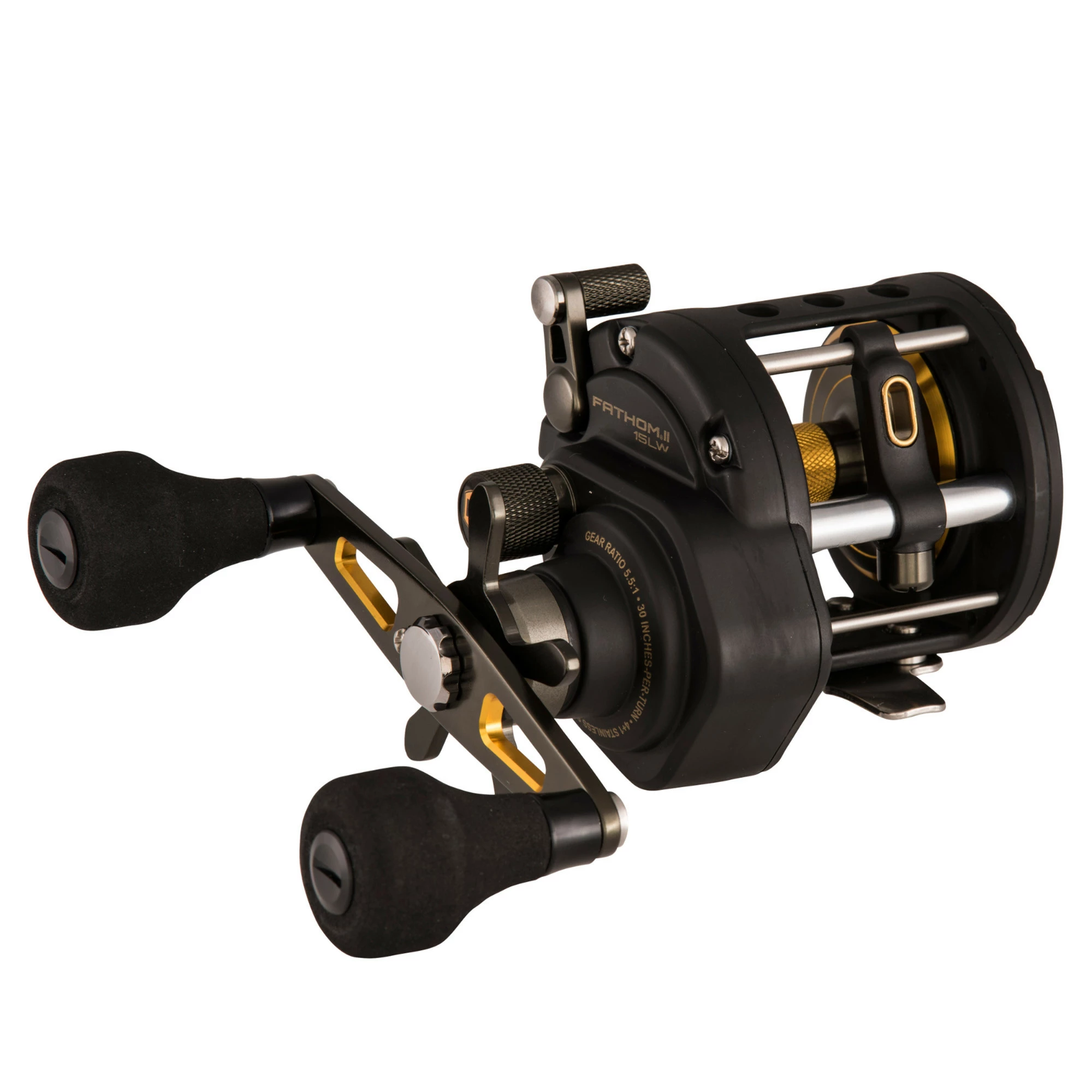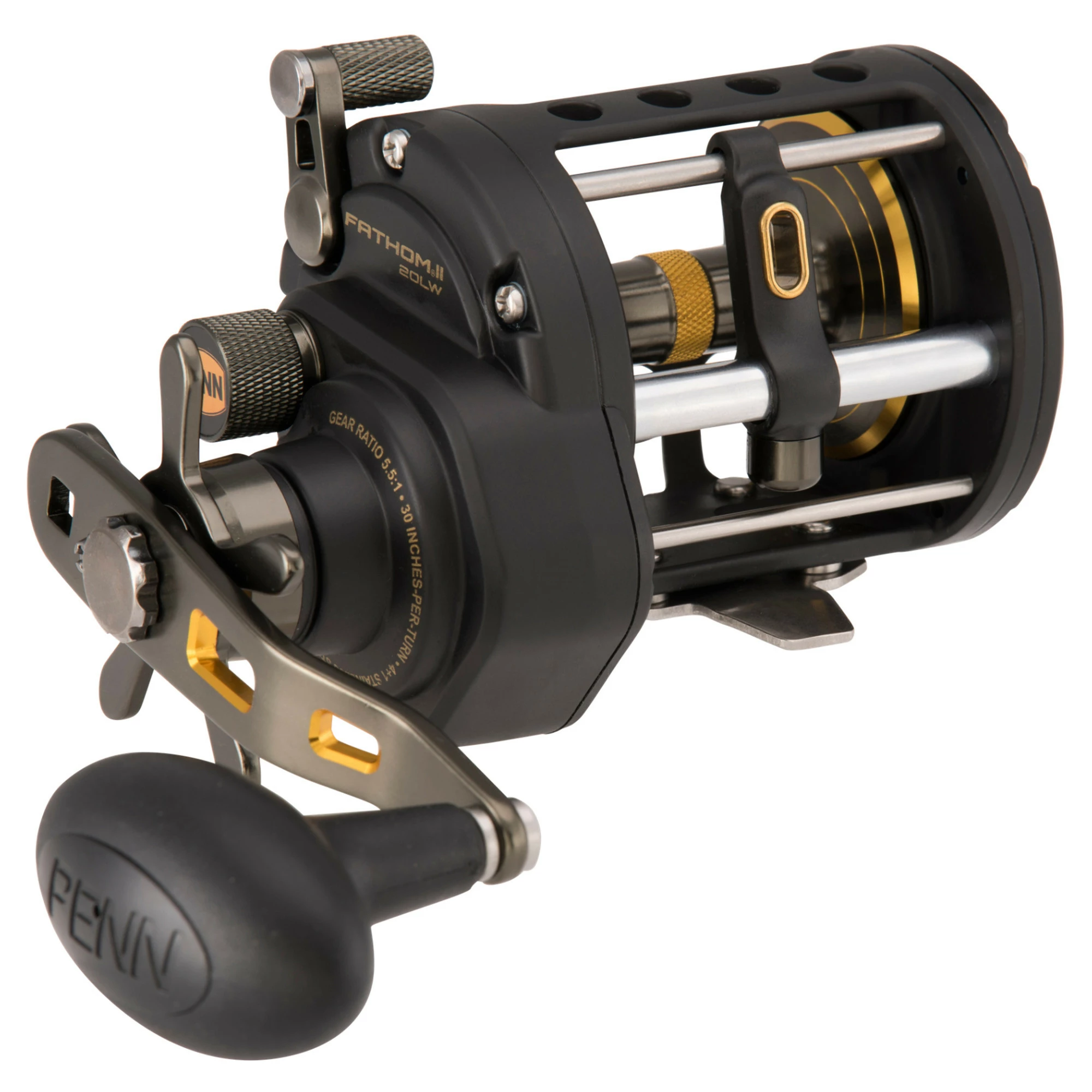 The PENN Fathom II Level Wind’s heavy duty construction and powerful gears make it a true workhorse and favorite of charter boat Captains. It is designed to handle extreme abuse day-in and day-out. Whether you are bottom-fishing or casting live bait, the Fathom II will stand up to the hardest fishing conditions. A Full Metal Body keeps precise gear alignment while the Fast Gear Access Sideplate allows for easy maintenance. The Fathom II also houses our powerful HT-100 drag system to stop any fish that bites.