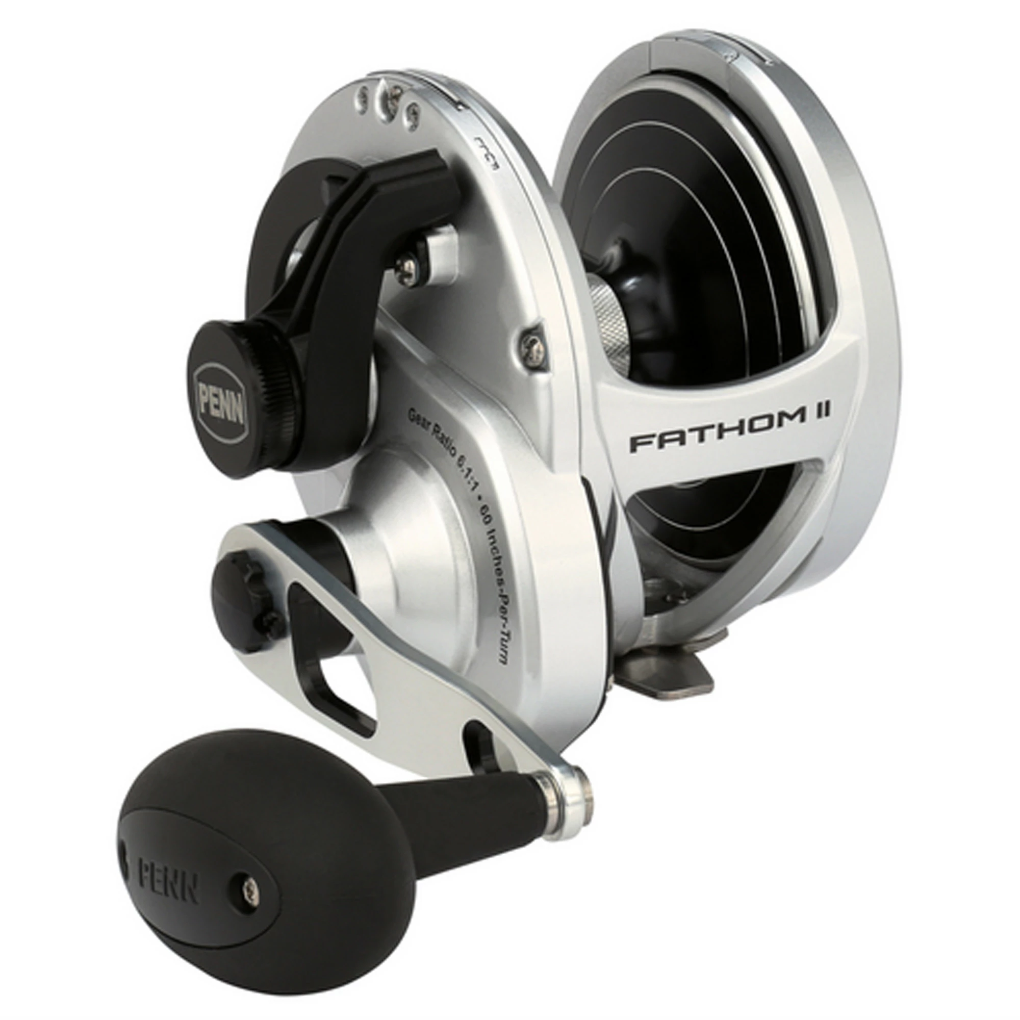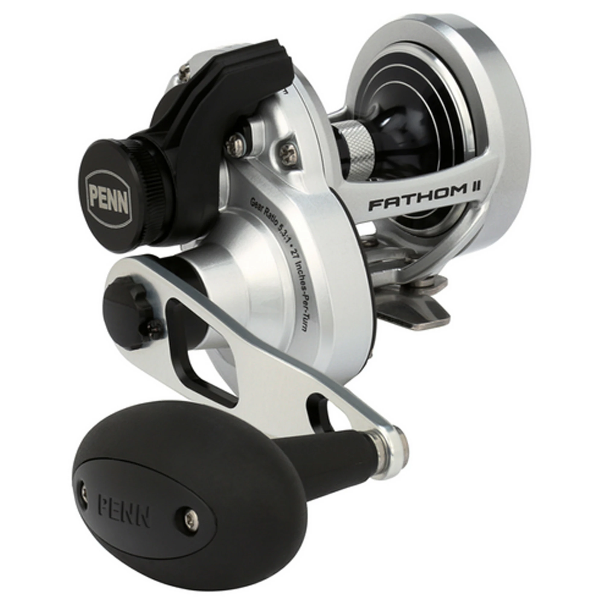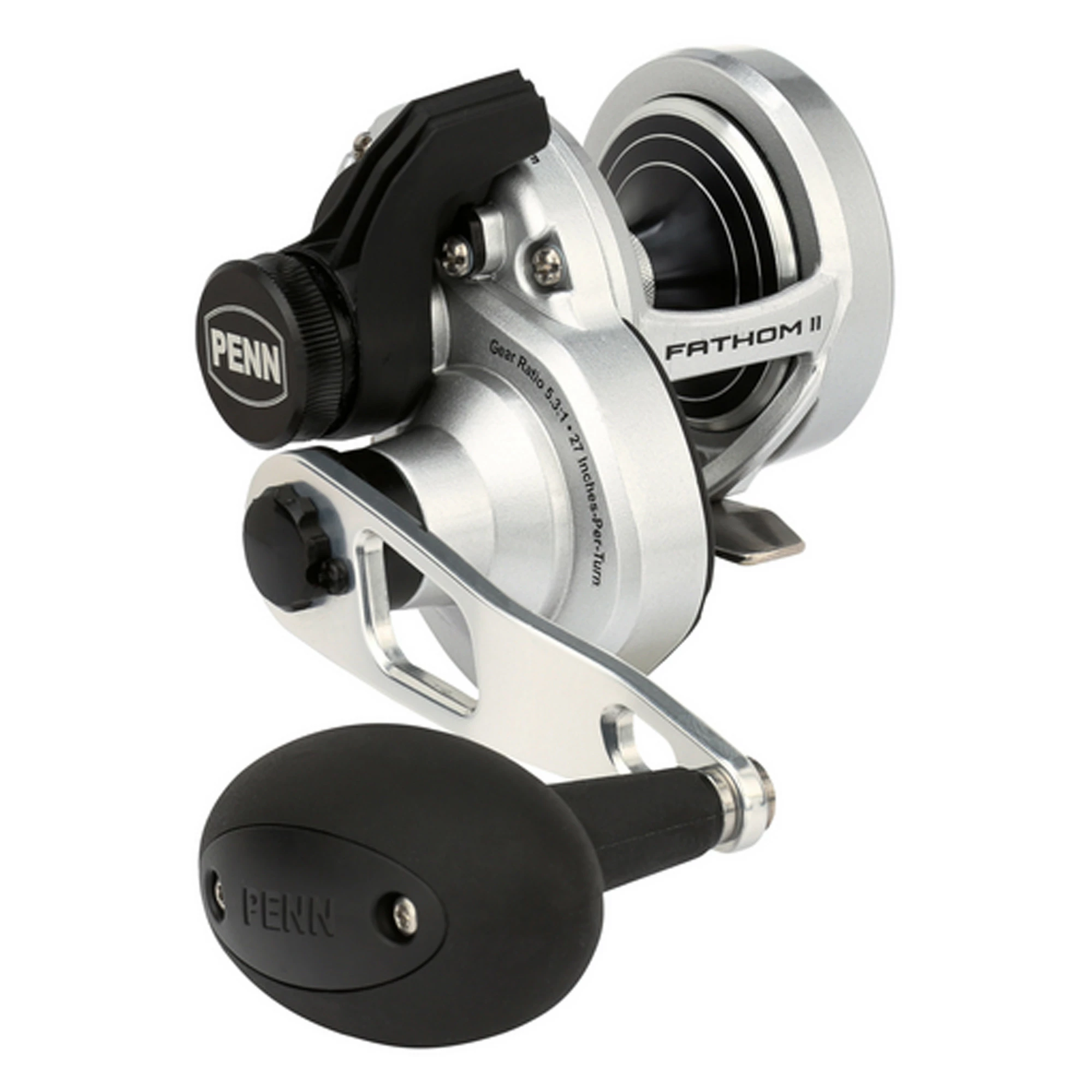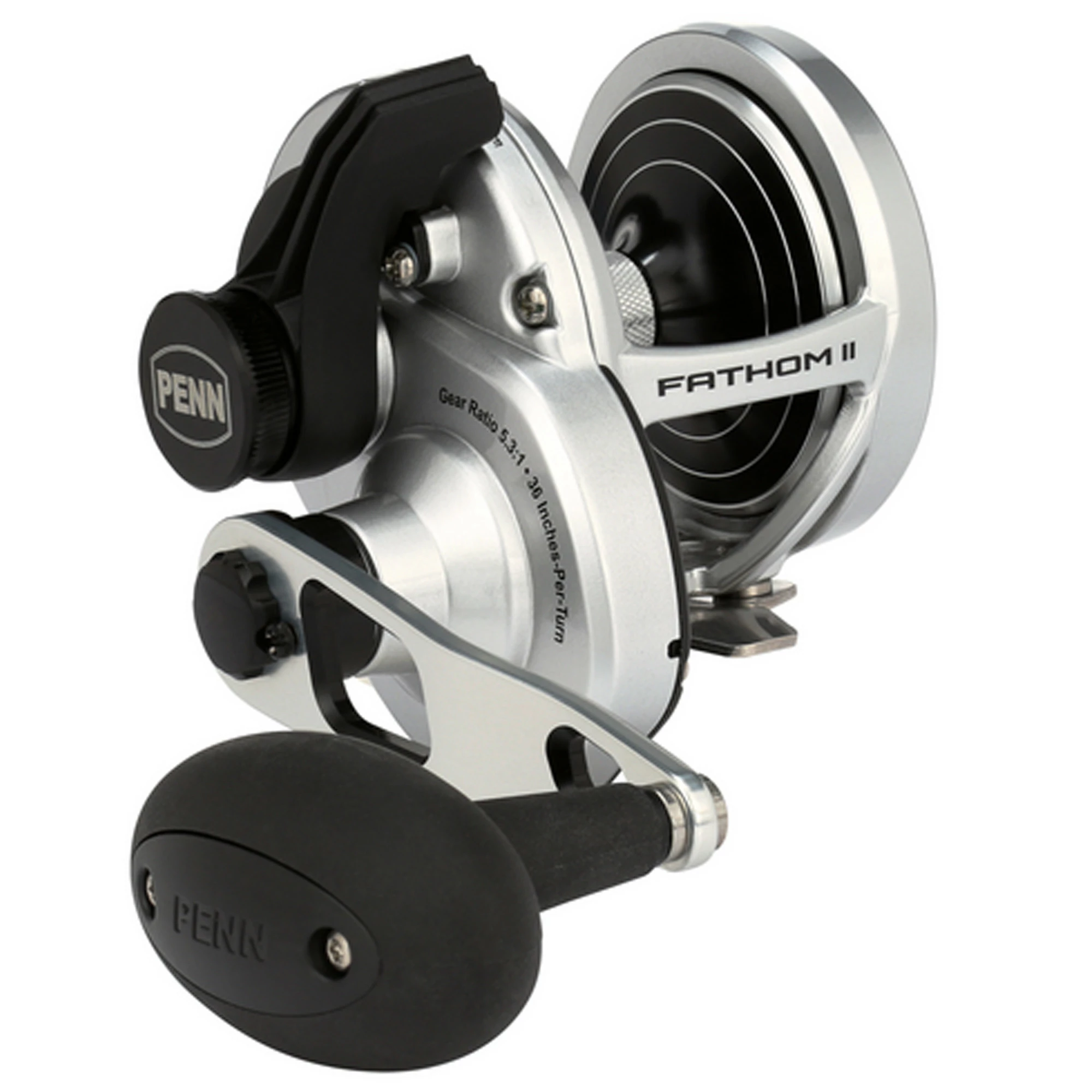 The all-new Fathomâ„¢ II Lever Drag reels take a class-leading reel and raise the bar even more. New models, sizing, features, and optimized billfish models round out the assortment to give a model for every application. Integrating the palm side plate and frame allows the Fathomâ„¢ II Lever Drag reels to be more compact in hand and increases strength. The Pull-to-Turn preset knobs allow the angler to truly set it, and forget it. At the Fathom’sâ„¢ core is a stainless steel main and pinion gear and a forged and machined aluminum spool for maximum durability.