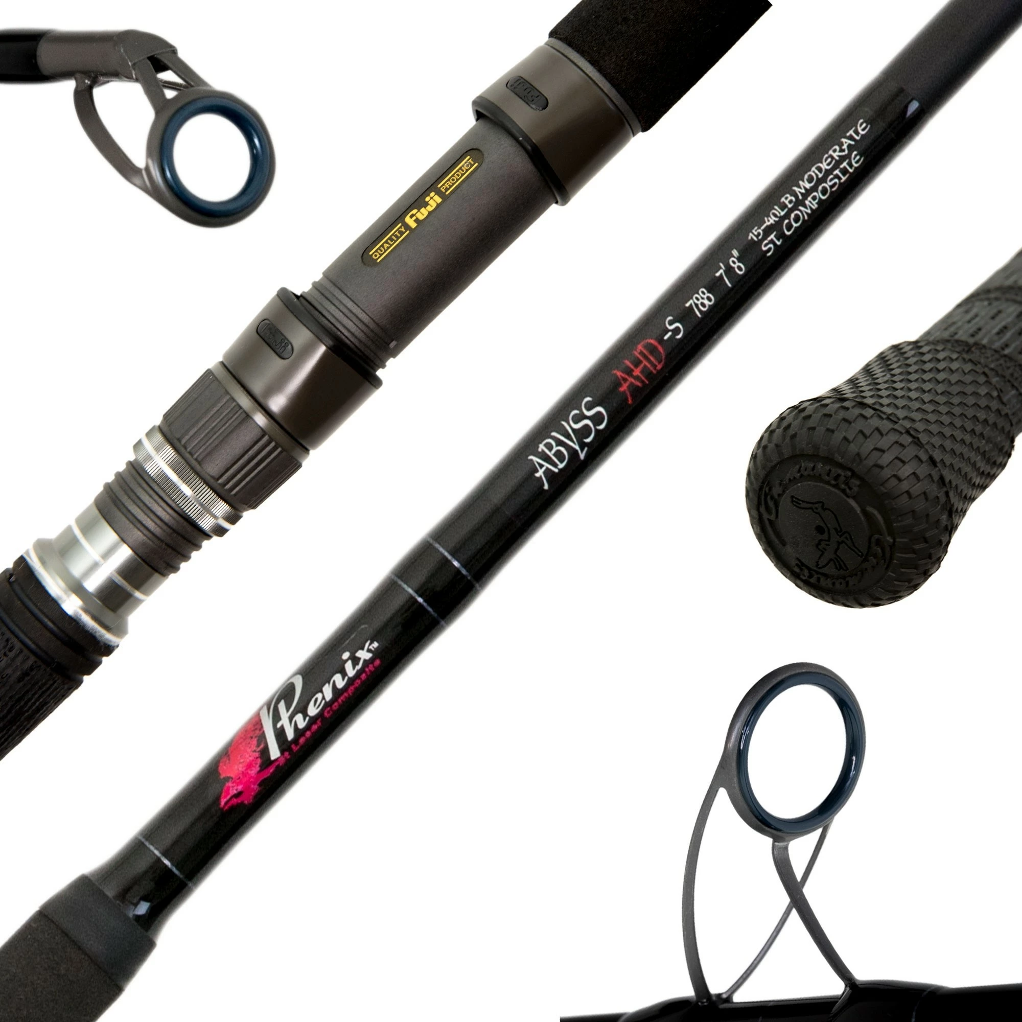 The ever popular Abyss series has a New upgraded version in the Abyss HD. With a composite blank utilizing a blend of S-Glass and Mitsubishi core Carbon Fiber for strength, sensitivity, and weight reduction. The new HD series features a Phenix exclusive “Custom Grip” non slip corded rubber butt cap. The new Abyss HD will be available in three different lengths, and five different actions per model to meet all your rod performance and techniques. Step up to the New HD and feel the difference!