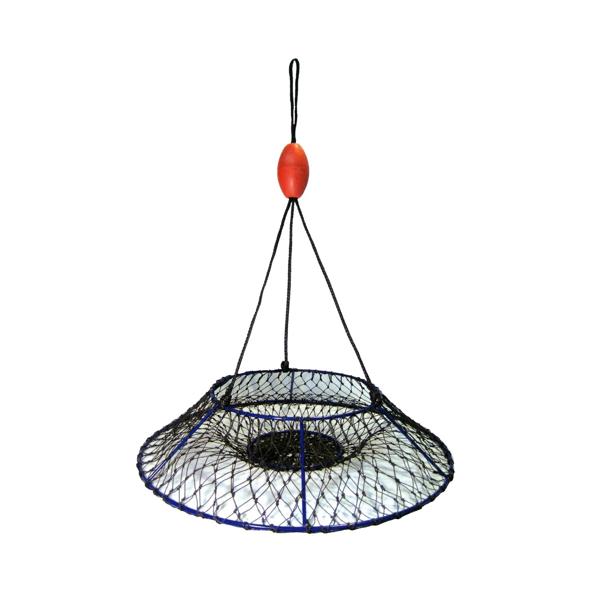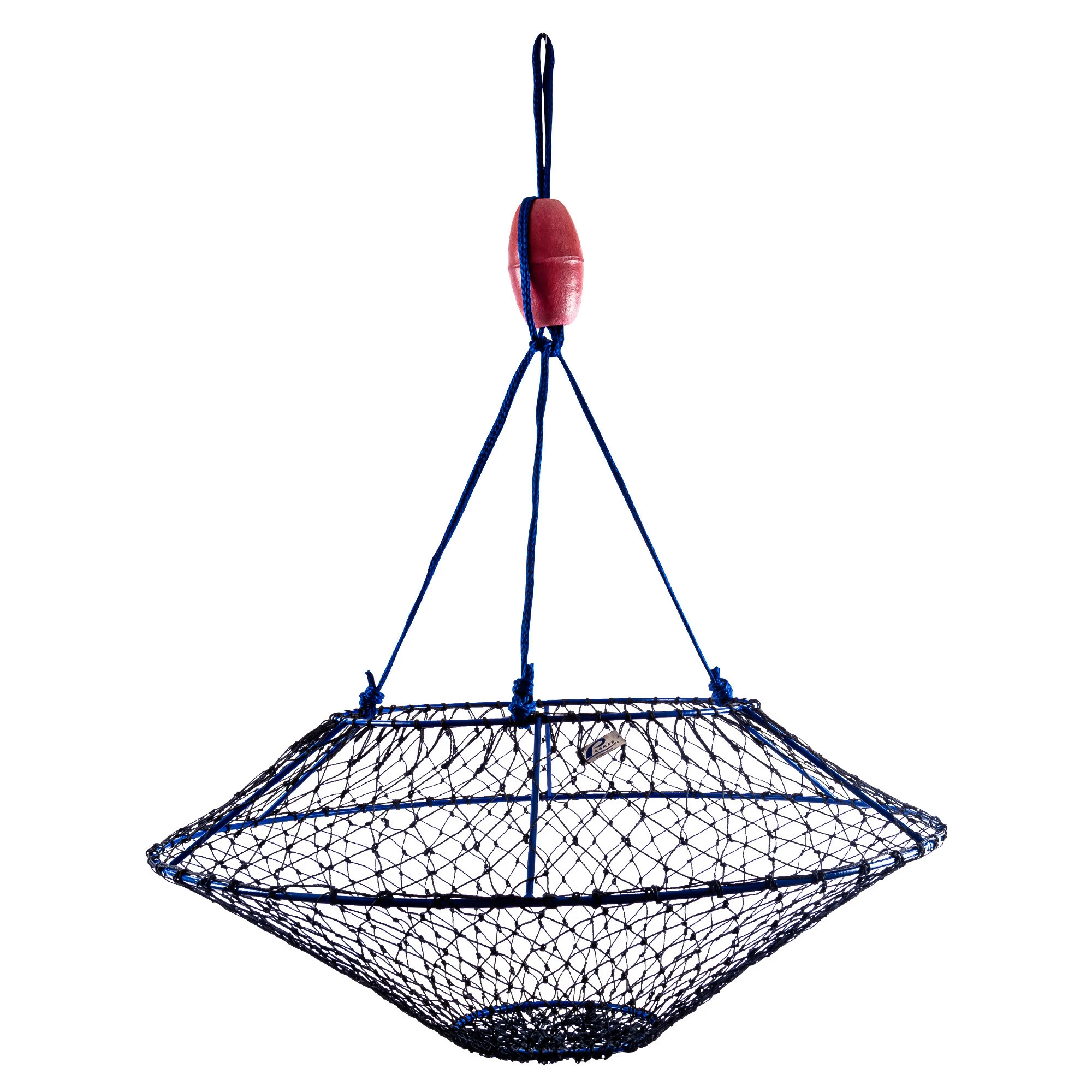 These Promar Ambush Hoop Nets are optimized for catching lobsters and crabs. Catch more large crustaceans such as lobsters from the larger volume provided by the steep angles, which also provides the additional benefit of helping to retain more of your catch. The rigid steel frame and top ring is shielded from the elements by the blue ocean vinyl protective coating. The stealthy blue also helps to blend the hoop net into the underwater environment. These nets are supported by 6 fixed welded posts that provide solid and stable hauls, and also come complete with patented built in bait pouch, weighted steel ring, heavy duty black harness and quality bridle float.