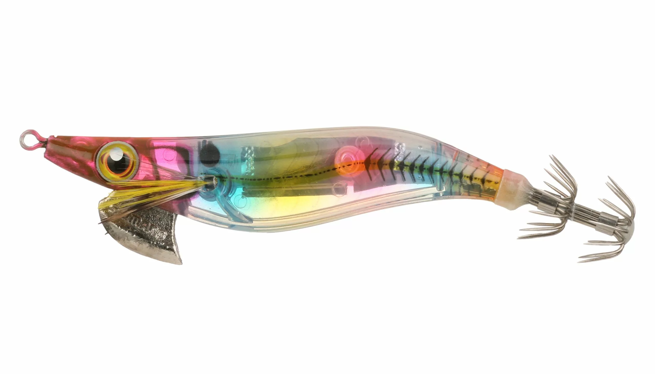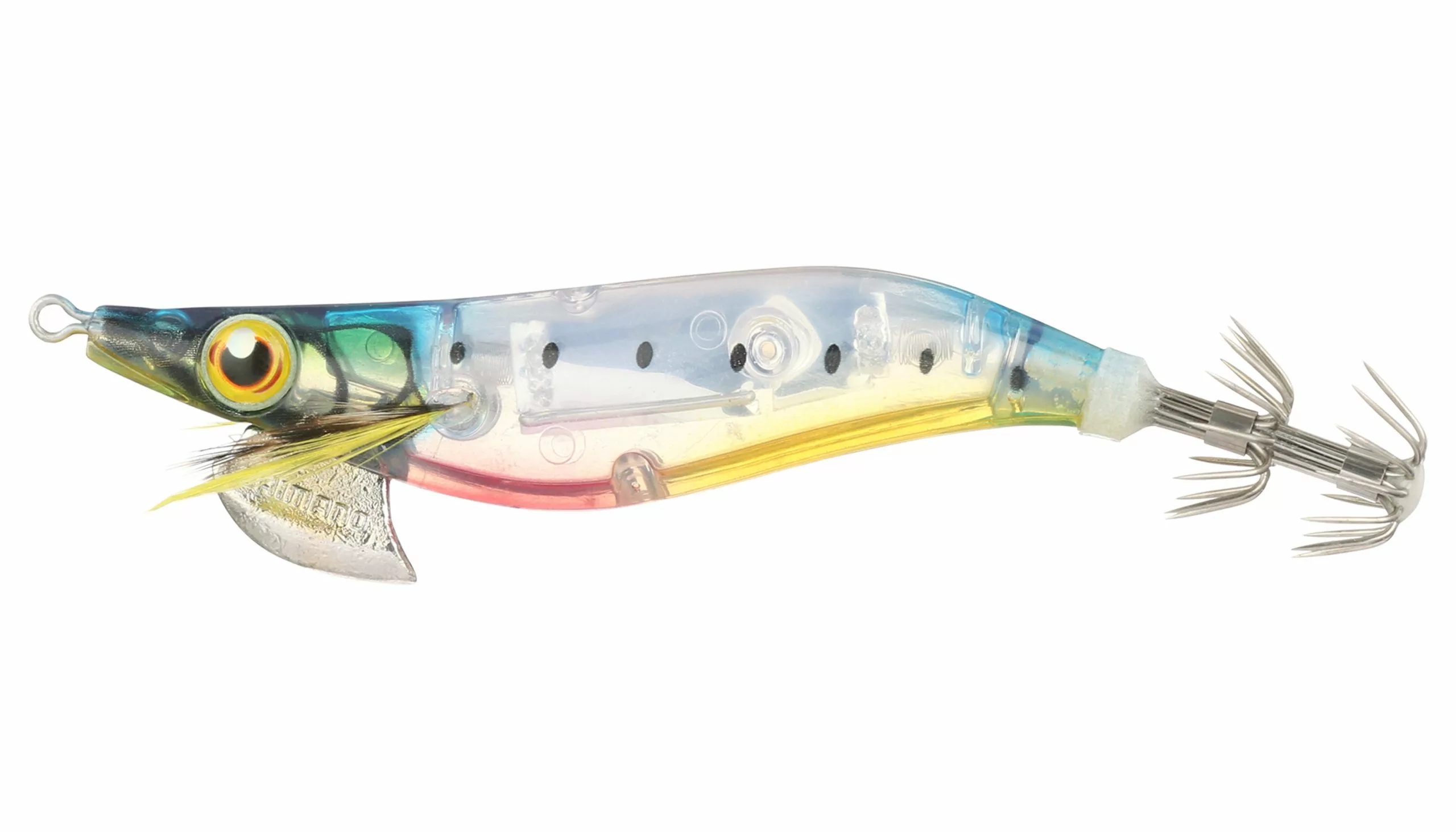 New to the North American market, the Shimano Sephia Clinch FLASH BOOST Lures integrate Shimano’s patented FLASH BOOST technology to trigger strikes from these highly-visual hunters. FLASH BOOST technology suspends reflective foil on micro springs within the clear section of the lure body and constantly emits a fish-attracting flash during the retrieve – even on the pause. Displaying an erratic swimming action when worked aggressively, an internal weight system within the Sephia Clinch 2.5 FB enables the jig to remain horizontal as an angler works the lure through the water column.
