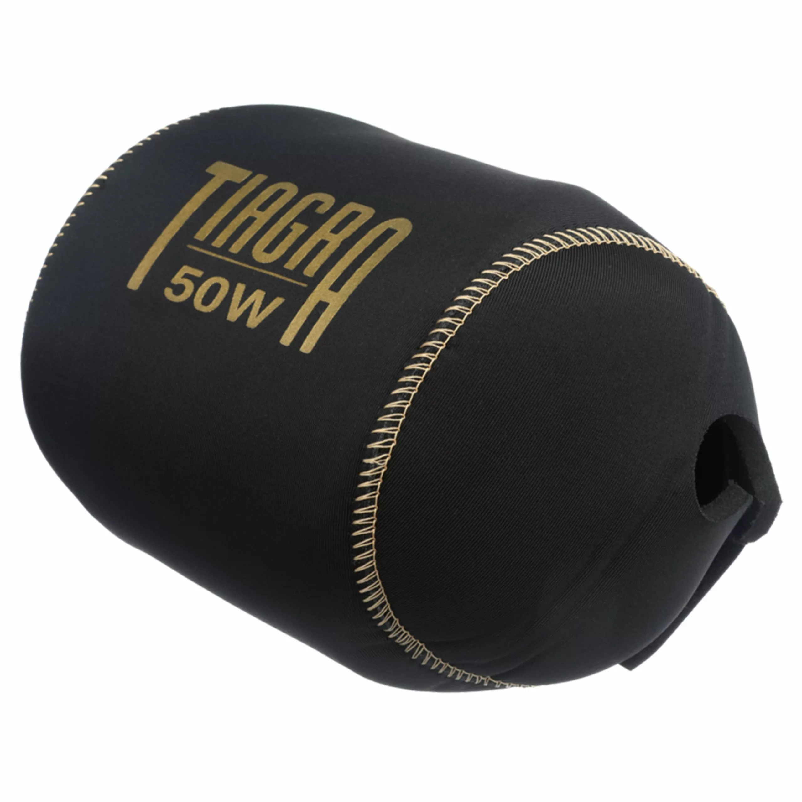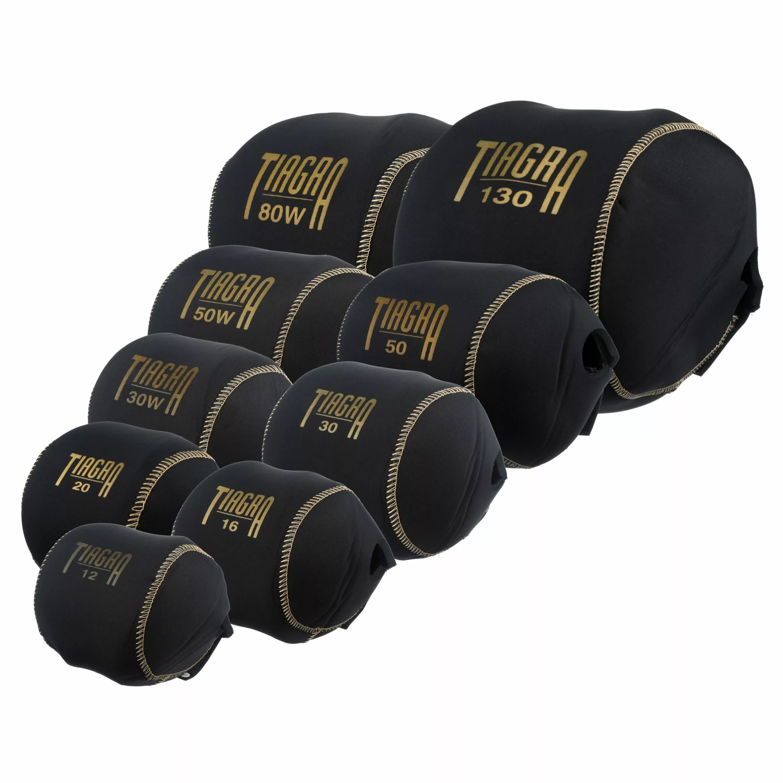 The Shimano Tiagra Reel Covers features include: 5mm neoprene sides, Gold logo and stitches over shiny black fabric match the color of Tiagra reels and Tallus rods. All reel covers fit perfectly to specific size of Tiagra reels.