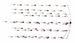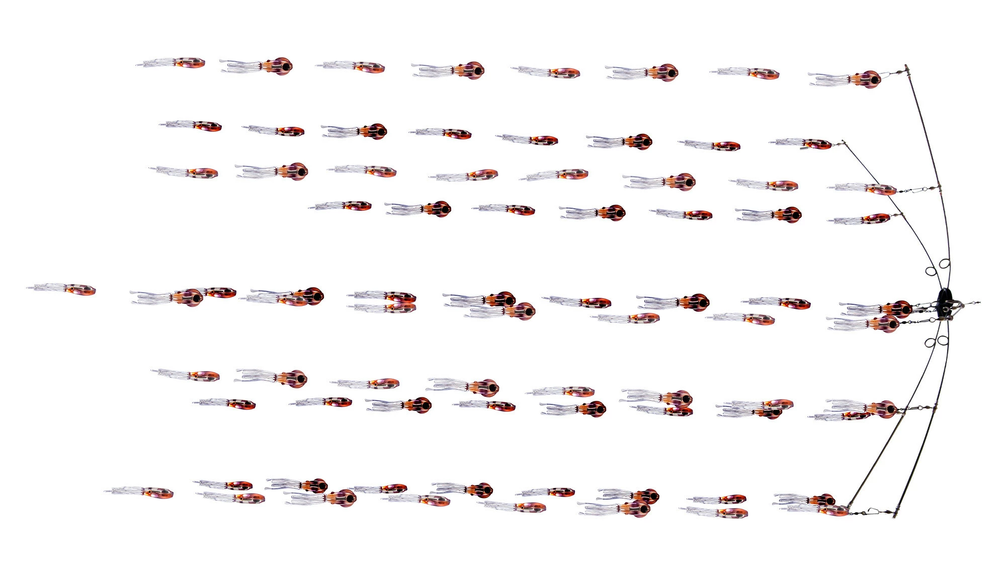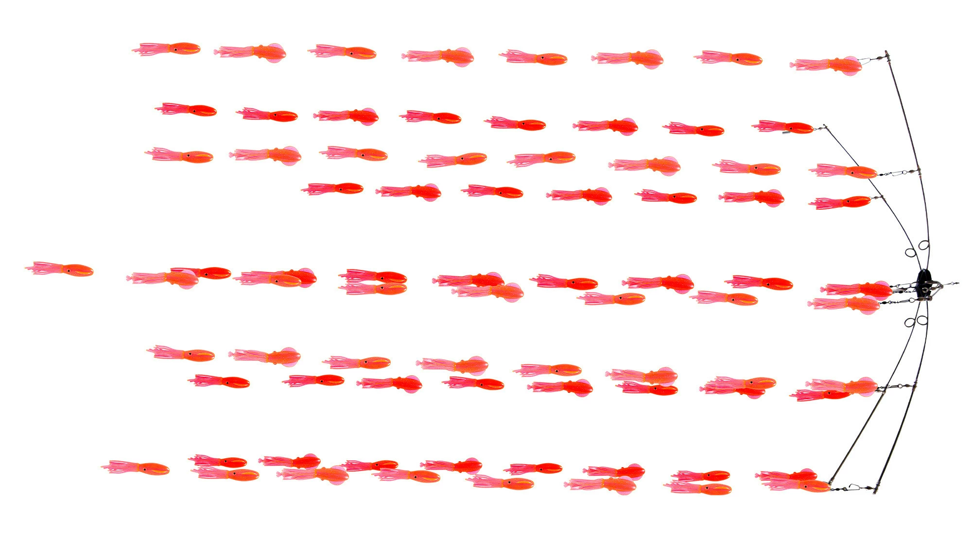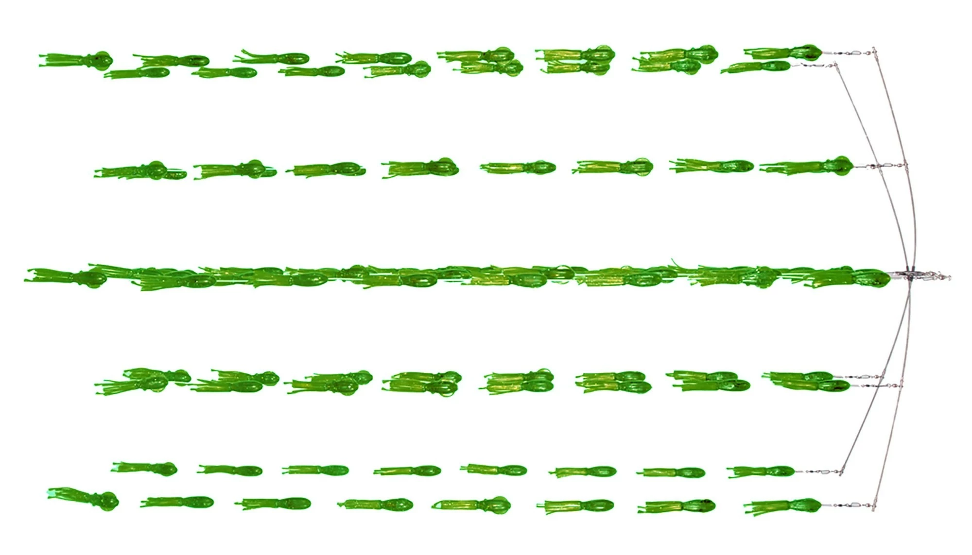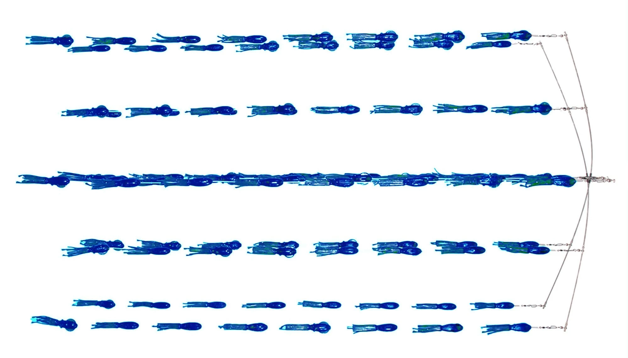 The Fat Daddy Dredge is constructed with 104 5.25 inch Squidnation Fat Daddy Squids. 36 inch stainless steel Squidnation Double Connect Dredge Bar. The large bulb and flexible tentacles make it an action packed dredge. The smaller soft mantles makes it virtually tangle proof. You will be amazed at the ease of deployment. A large dredge that has such a big profile is usually a nightmare to deploy without tangling. These dredges also pull with much less resistance than other artificial dredges. Fat Daddy Squids were customized to be pulled in large numbers with minimal restraint. White Marlin, Big Eye Tuna, Mahi have been attacking the Fat Daddy Style dredges in all of our test runs on the east coast. In the Pacific Ocean Sailfish and Blue marlin have been raised in all of the test runs. Put a Squidnation Fat Daddy Dredge in your spread today!