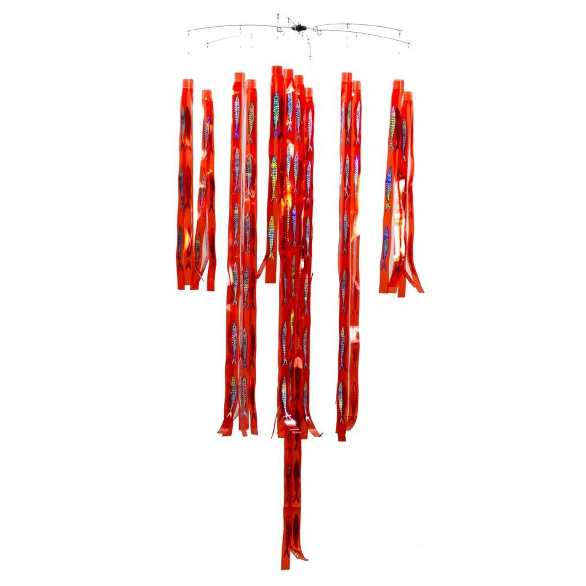 The Squidnation Flash Mob Dredge takes a proven technique to a new level. The Strips are on a 36 inch Squidnation Bar and the Strips are Blood Red, Killer Pink or Offshore Blue to emulate many of the Squid, Sardine and Lantern Fish bait balls throughout the world. So when a boat raises the interest of a fish and the pelagic fish rises to the spread and sees a red,pink or blue bait ball the fish begins to turn colors which indicates attack mode! Marlin, tuna, dorado, sailfish and wahoo and mackerel will attack this dredge and the hooked baits in the pattern. Squidnation Flash Mob Dredges come in three different colors to match the hatch as a bait ball as a whole and not just as a single fish. Squidnation have gone a step further and added Ultra Violet Additives to make the fish glow when under Ultra Violet sun rays. Put a Flash Mob Dredge in your spread today!